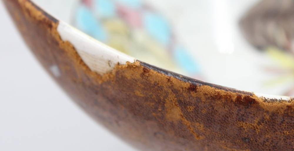 50er Jahre Schale, signiert Coccio, Altersspuren, ca. H-9,3cm D-21cm [1]