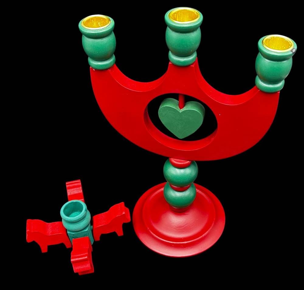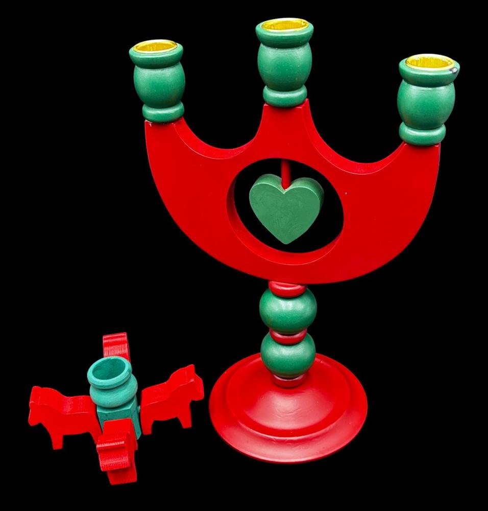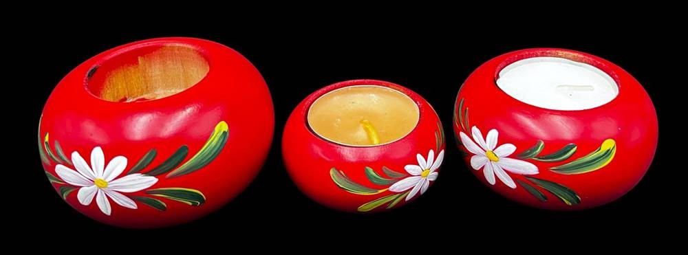 5x Holz-Kerzenhalter "Made in Sweden" alle mit Etikett, H-max. 29 cm, minimal 2,5 cm
