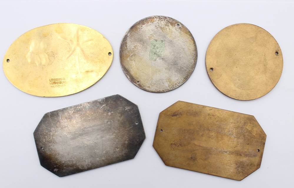 5x Plakette aus den 50er Jahren, ADAC, ca. 6,5 x 10cm