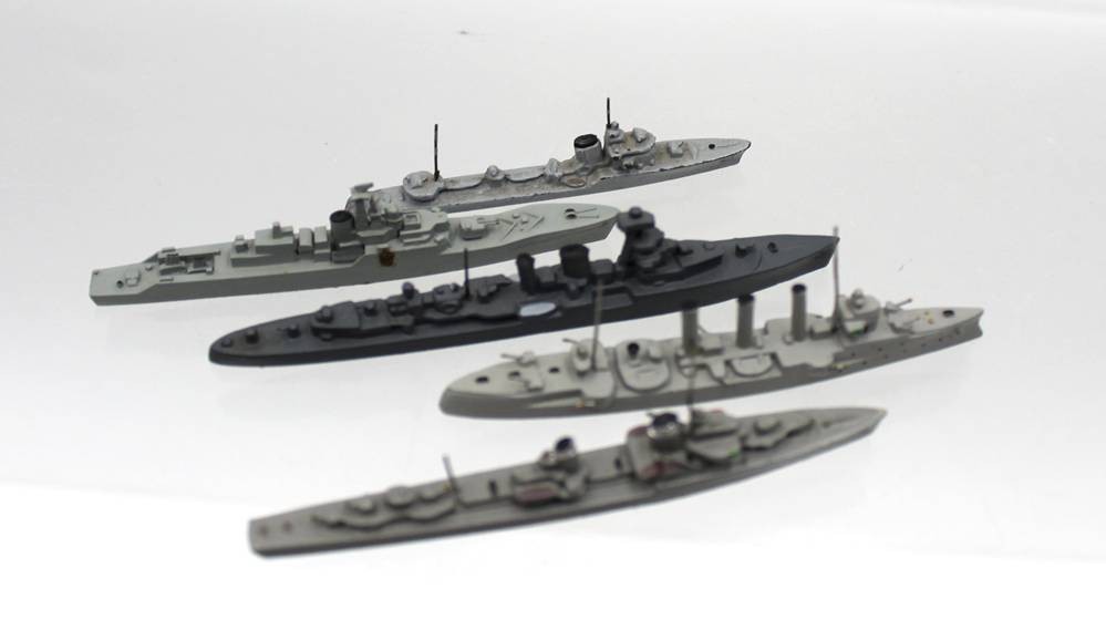 5x Schiffsminiaturen, Wiking, älter, Kriegsschiffe, ca. L-11cm