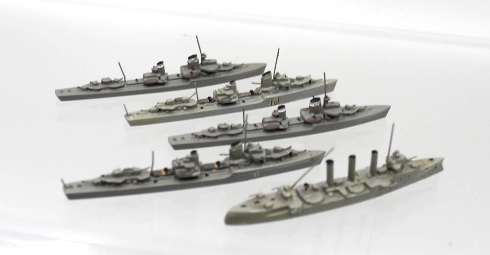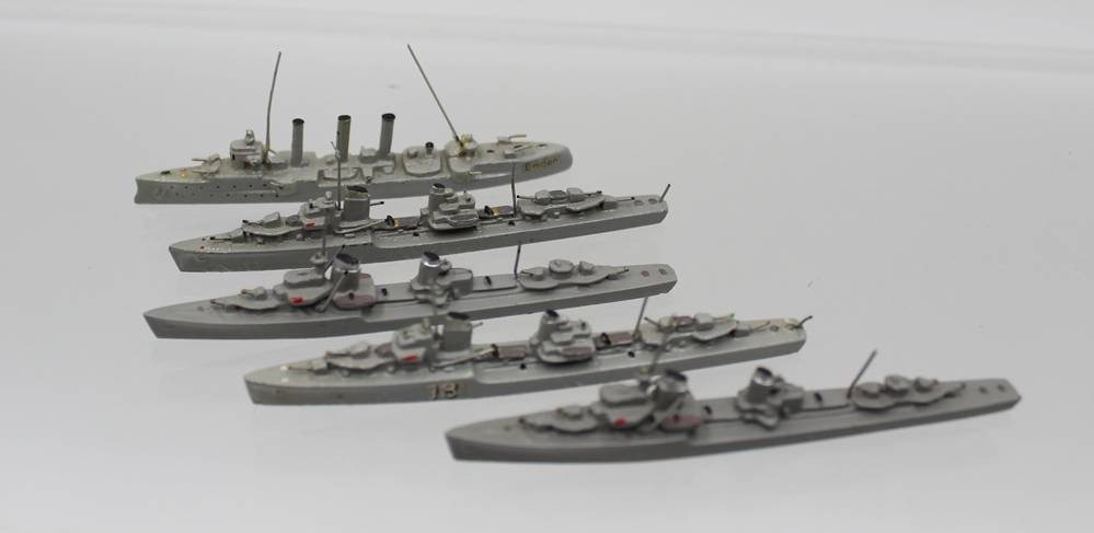 5x Schiffsminiaturen, Wiking, älter, Kriegsschiffe, ca. L-9,8cm