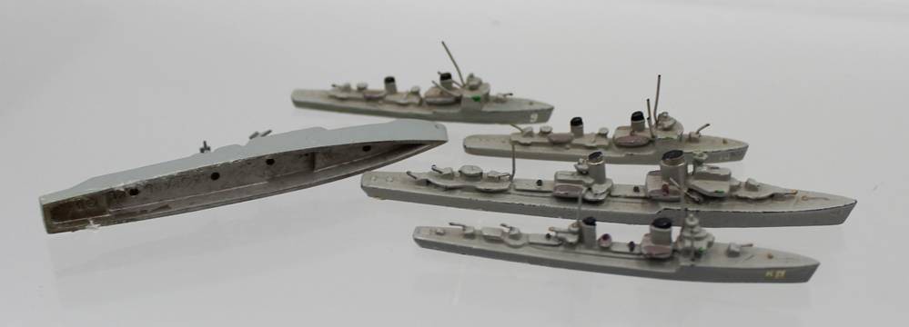 5x Schiffsminiaturen, Wiking, älter, Kriegsschiffe, Größtes L-9,8cm