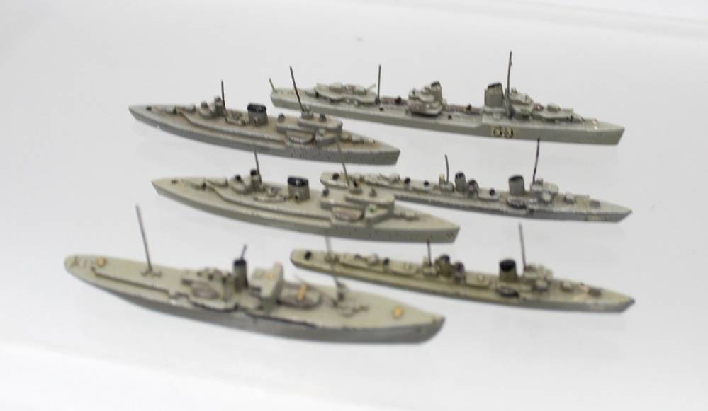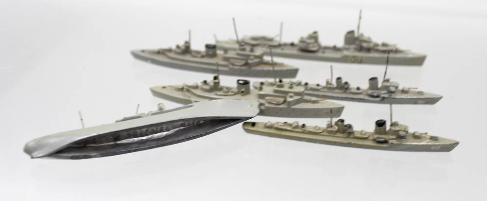 6x Schiffsminiaturen, Wiking, älter, Kriegsschiffe, Größte L-10cm