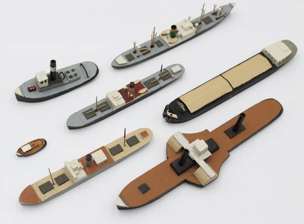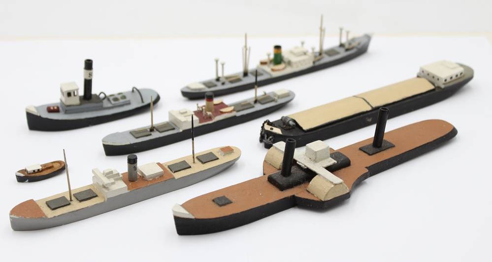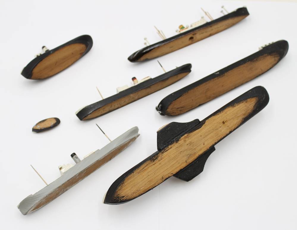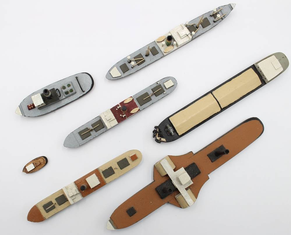 7x div. Holz-Schiffsmodelle, älter, ungemarkt, Größte L-18,8cm bis 2,8cm [1]