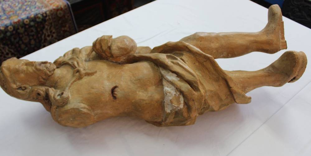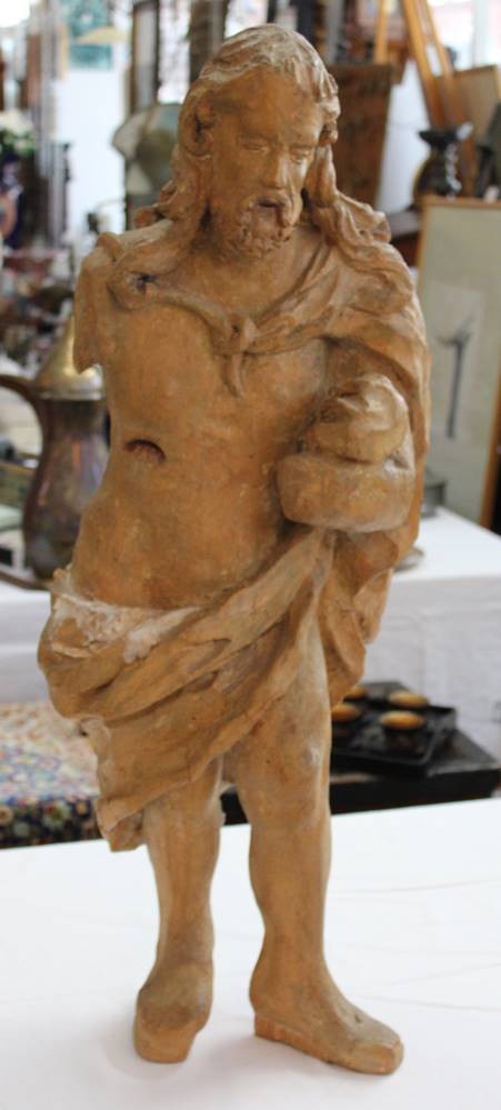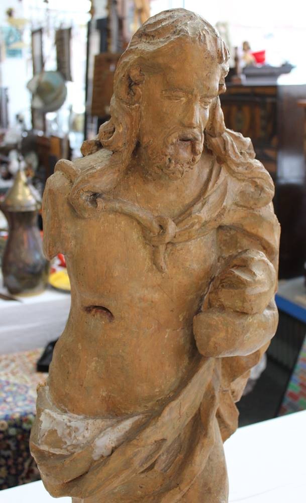 antike Holzfigur, Jesus Christus, wohl 17./18. Jhd., Altersspuren, 1x Arm fehlt, ca. H-88cm [1]