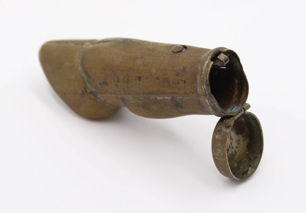 antiken Streichholzhalter aus Messing in Form eines Hirschhufs, ca. L-7,5cm