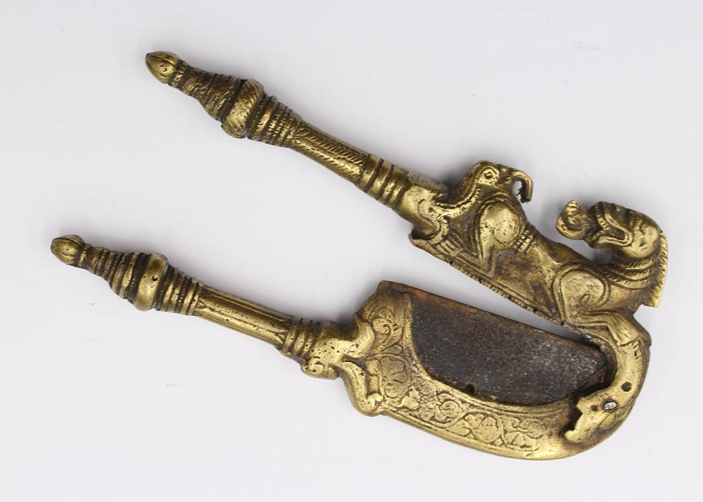 antiker Betelschneider, Indien, Bronze, Fabelwesen, L-15,5cm [1]