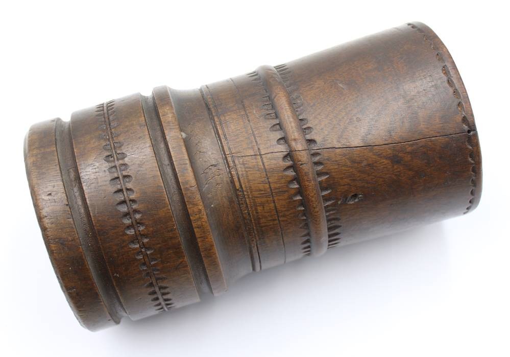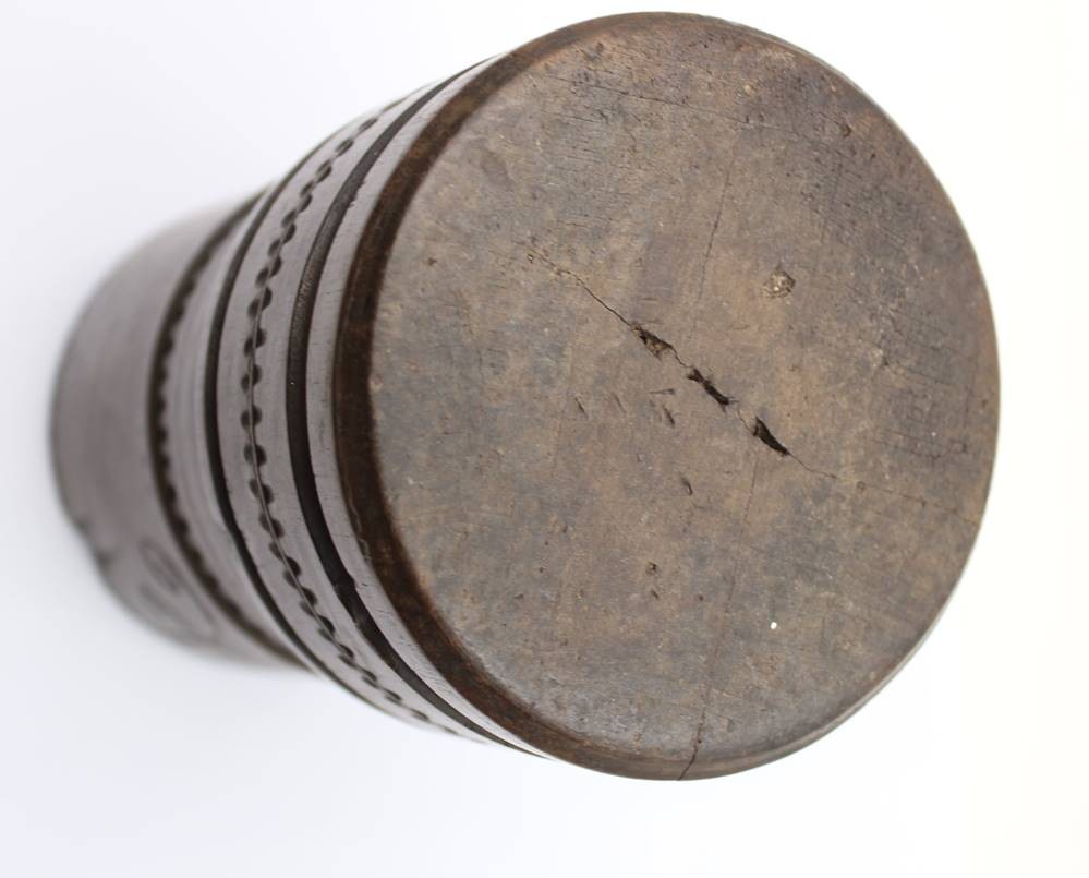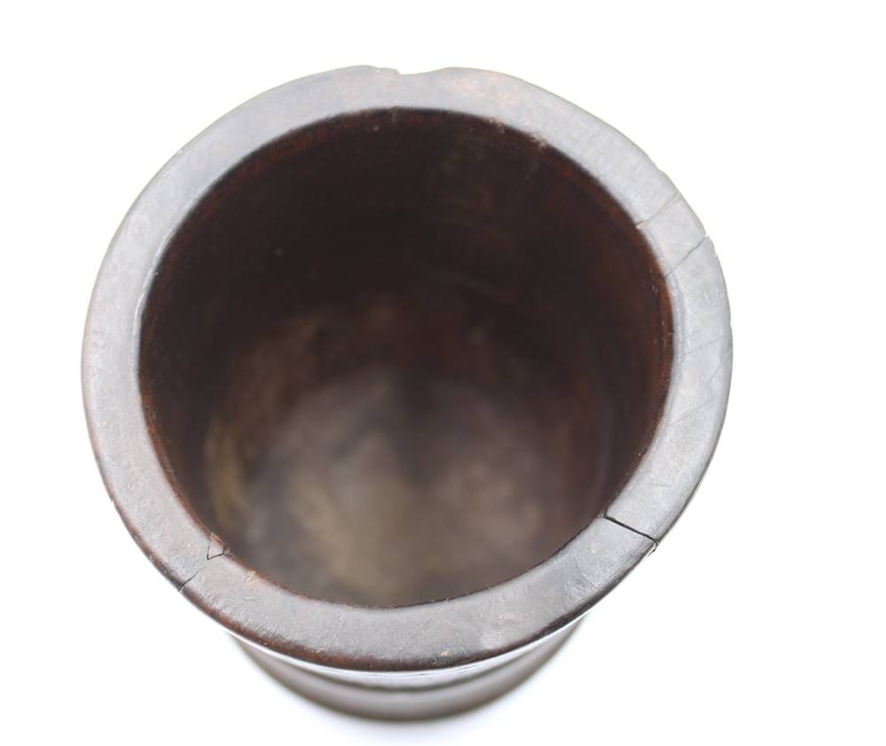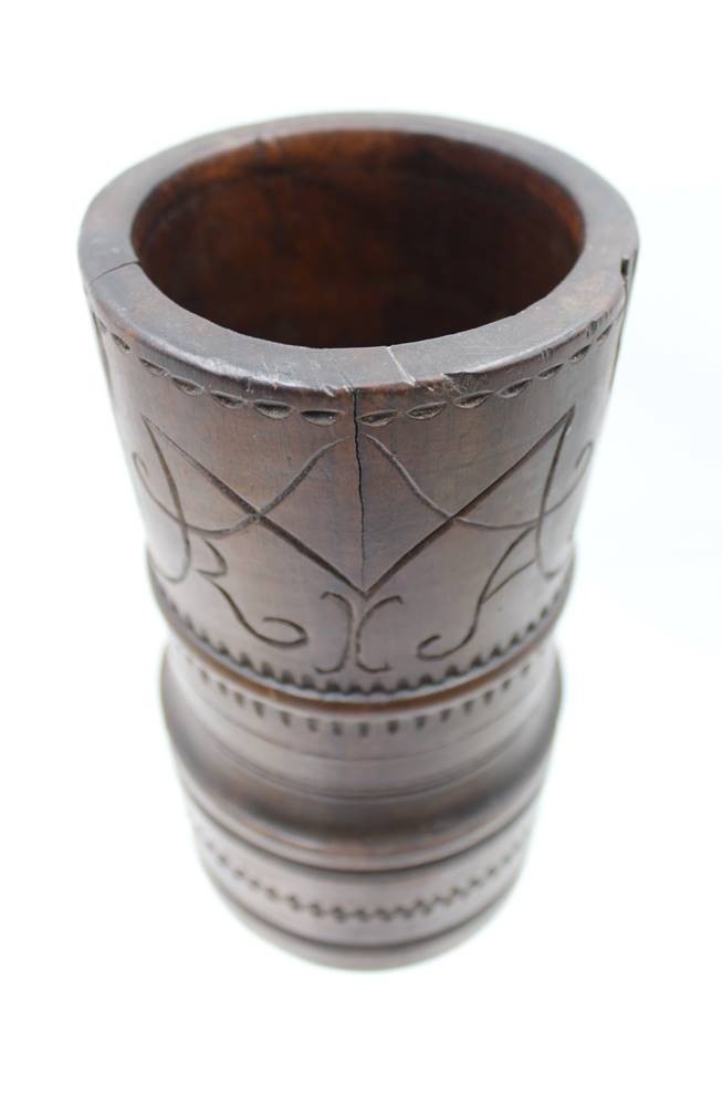antiker Holzmörser, Mohnmörser, Altersspuren (rissig etc.), ca. H-19,5cm [1]