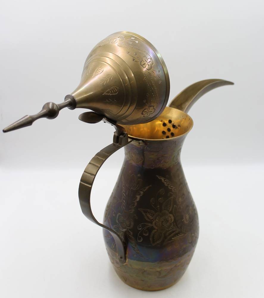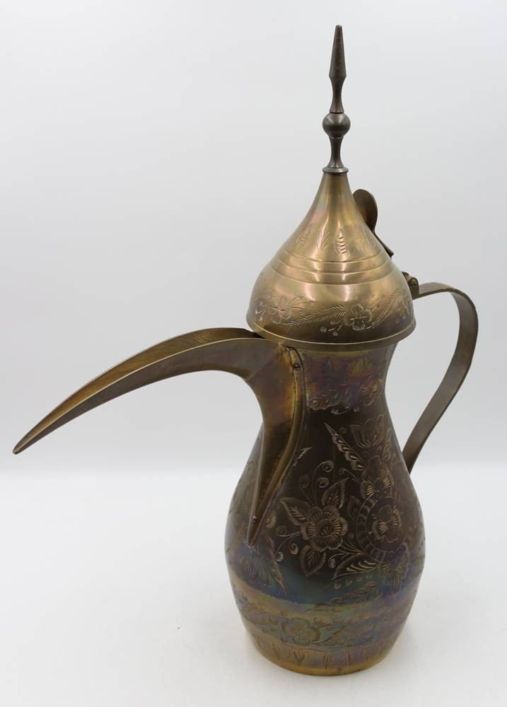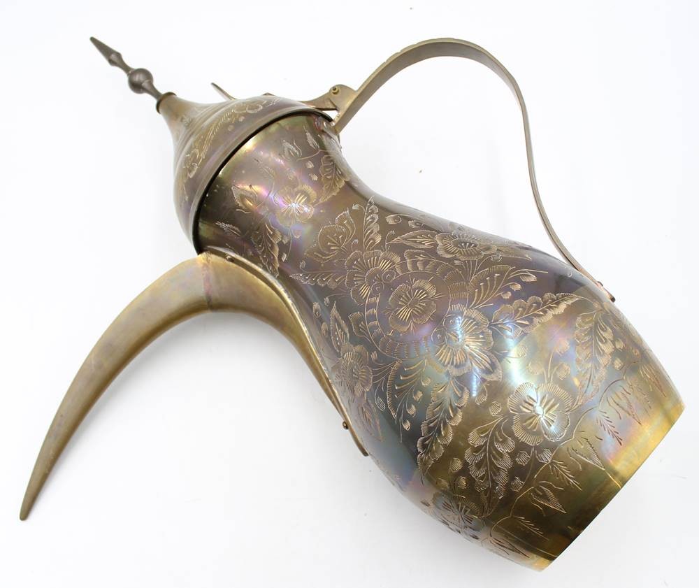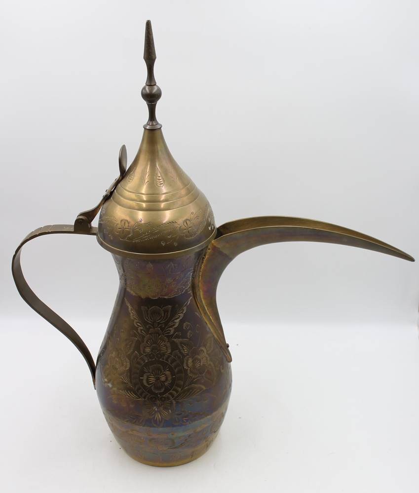 arab. Kaffeekanne, Dallah, Messing, florales Dekor, ca. H-60cm
