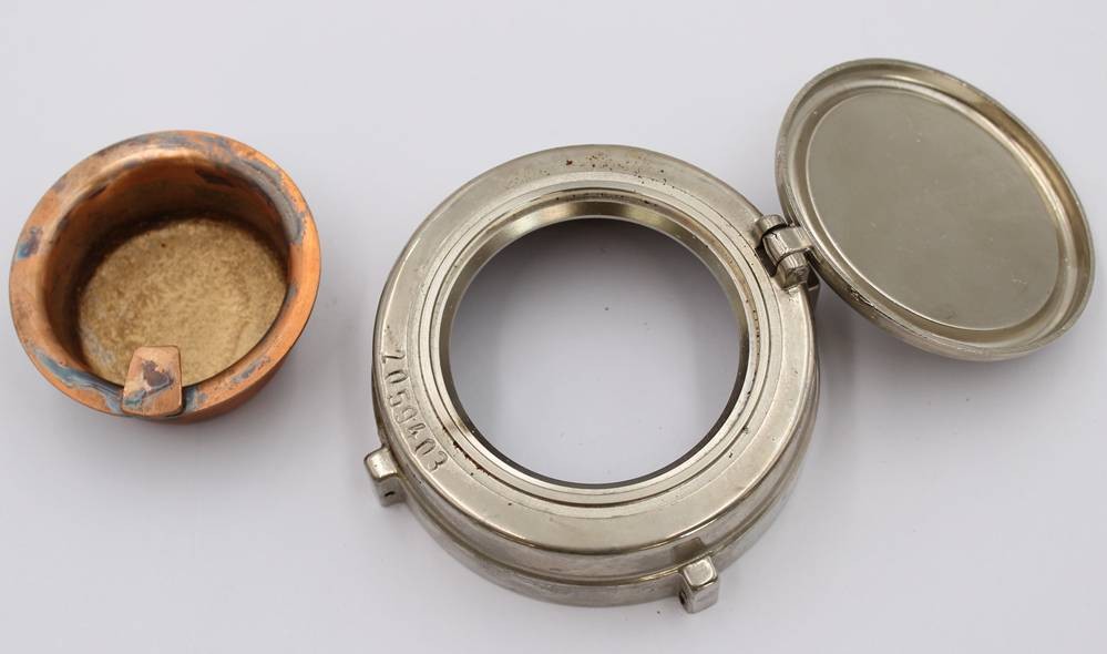 Ascher it Werbeaufschrift, Frankfurter Zählerfabrik Spanner & Loeven, Metall, H-ca. 4cm D-9cm [1]