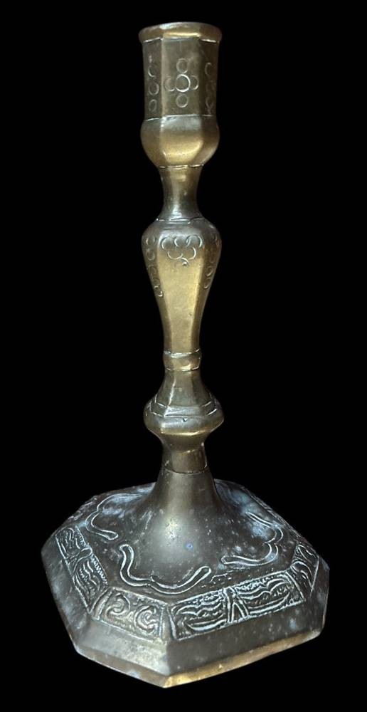 barocker Kerzenständer, Bronze, mit Gravuren, H-21 cm [1]