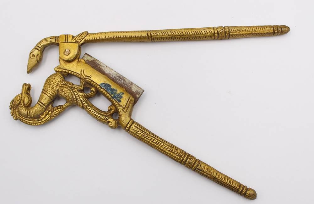 Betelschneider, Indien, Bronze, Pferd u. Schlange, L-17cm