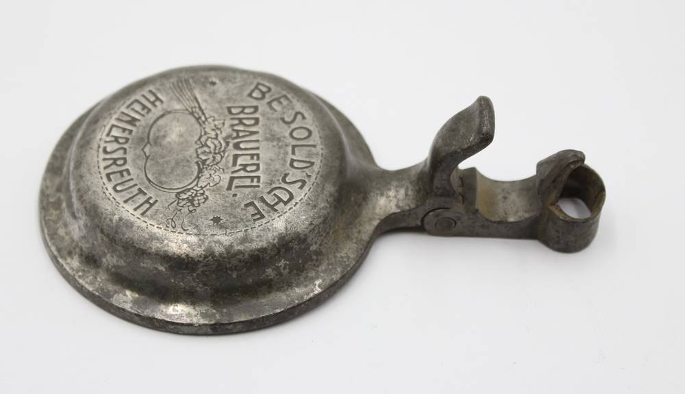 Bierkrugdeckel aus Zinn mit der Prägung Besold'sche Brauerei Heinersreuth, ca. D-8,8cm