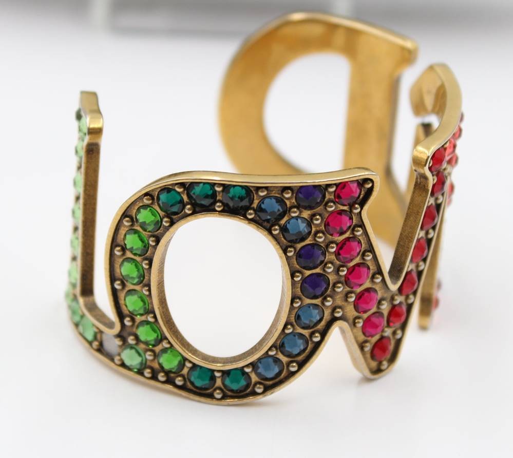 Brillenetui und Armspange, "GUCCI", bei Spange fehlen Steine, Etui mit Gebrauchsspuren, Spange ca. D-5,5cm