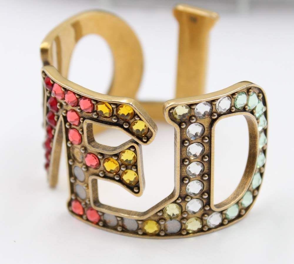 Brillenetui und Armspange, "GUCCI", bei Spange fehlen Steine, Etui mit Gebrauchsspuren, Spange ca. D-5,5cm [1]