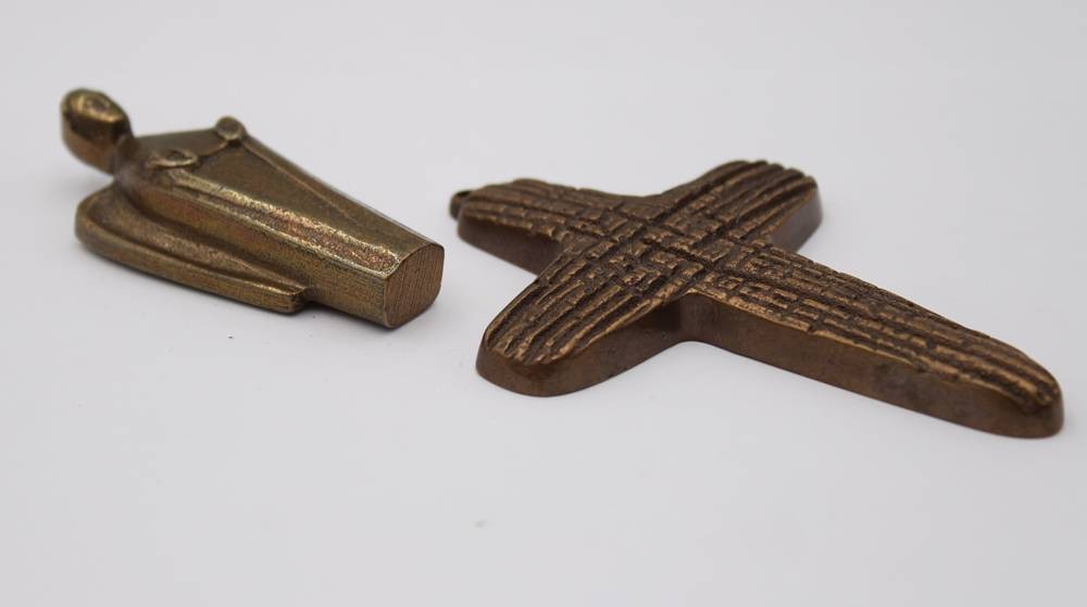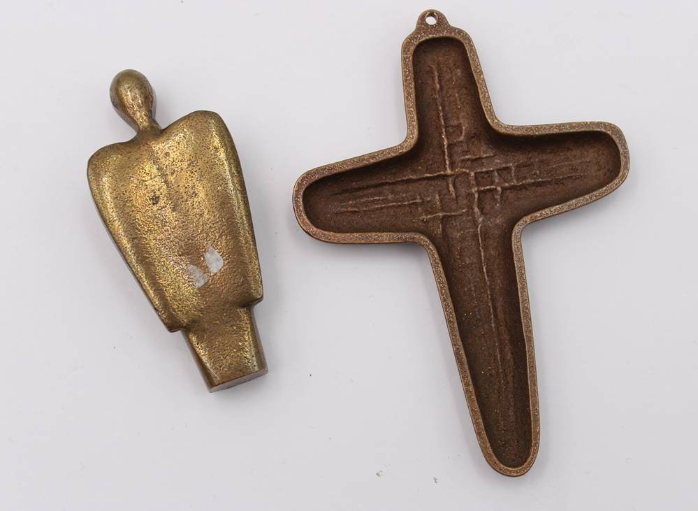 Bronze-Engel und Kruzifix, wohl Taufbeigaben, ca. L-9,5cm [1]