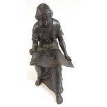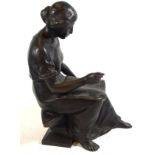 Bronze-Skulptur "stickende Frau", geschwärzt, H-19 cm, T-12 cm