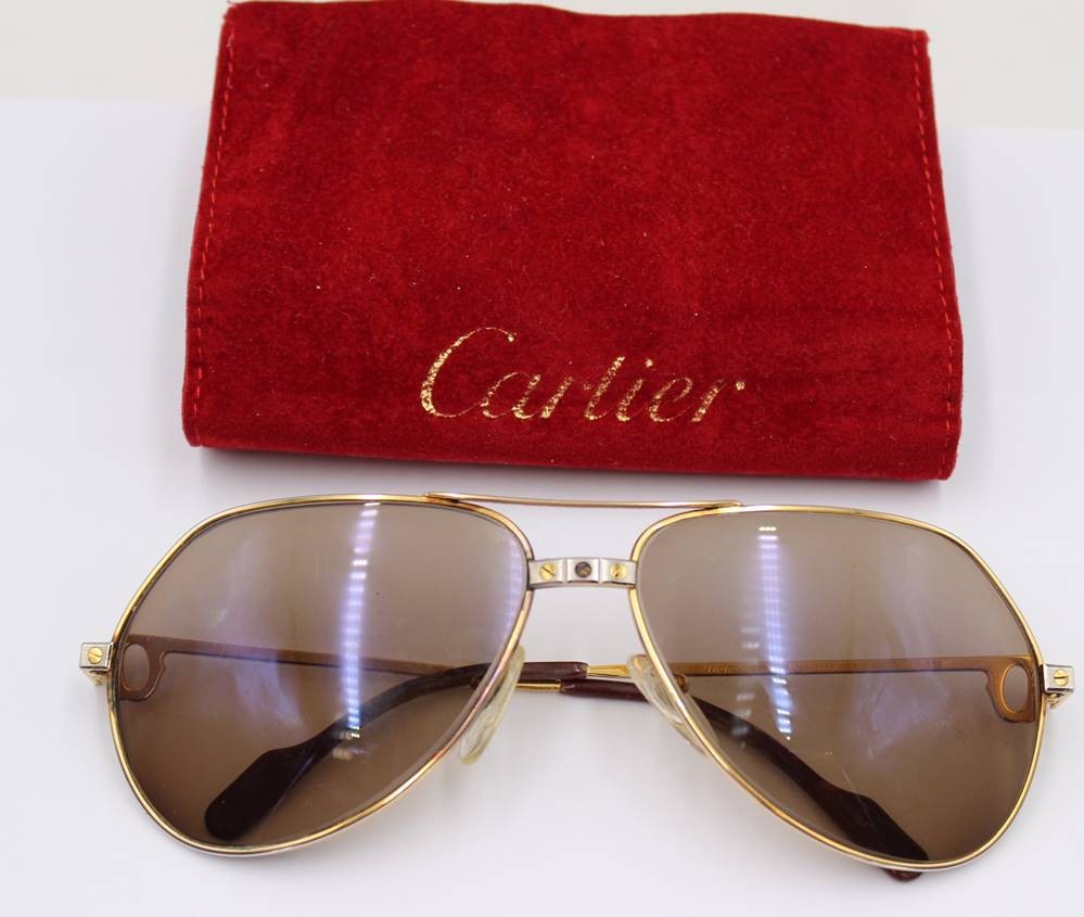 CARTIER VINTAGE Sonnenbrille "ROMANCE SANTOS", anbei Schutzhülle, 1x Bügel mit Riss, sowie am Steg ein Fehlteil [1]