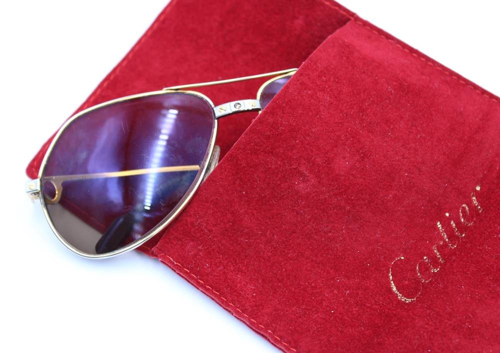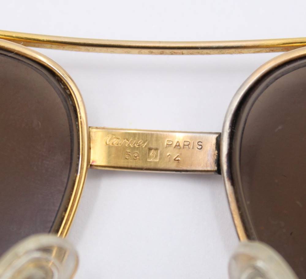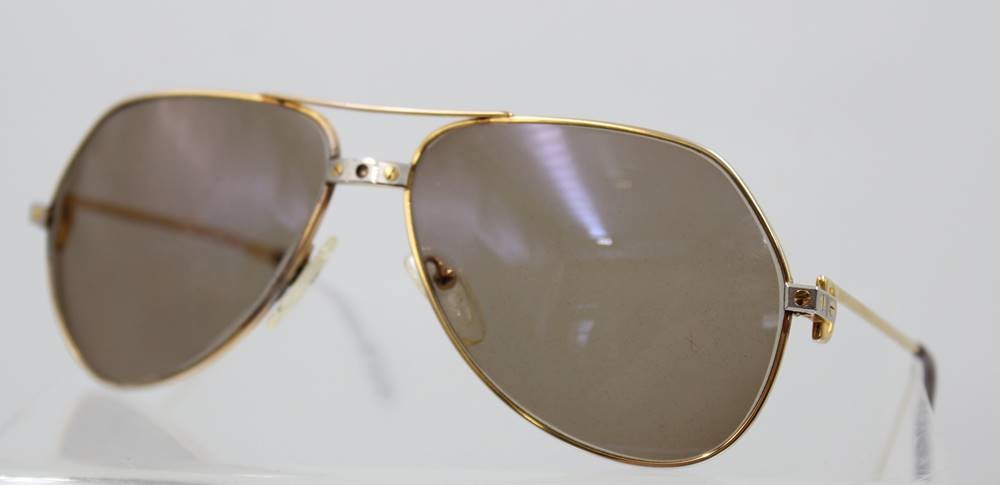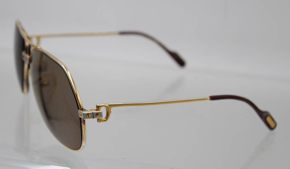 CARTIER VINTAGE Sonnenbrille "ROMANCE SANTOS", anbei Schutzhülle, 1x Bügel mit Riss, sowie am Steg ein Fehlteil