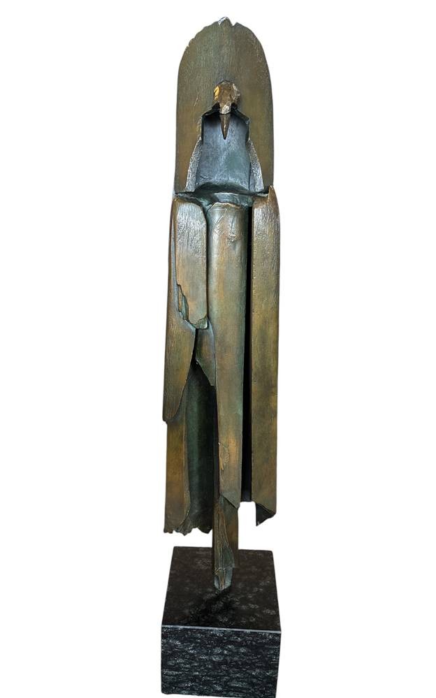 Dieter FINKE (1939-2011), Der Schamane, hohe Bronze auf Steinsockel, ars mundi Exklusiv-Edition, Nr. 3/199, Gießerstempel, ca. H-108cm, ca. 18 KG [1]