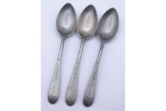 Drei alte Zinnlöffel, Marke mit Datierung 1807, L- 22cm