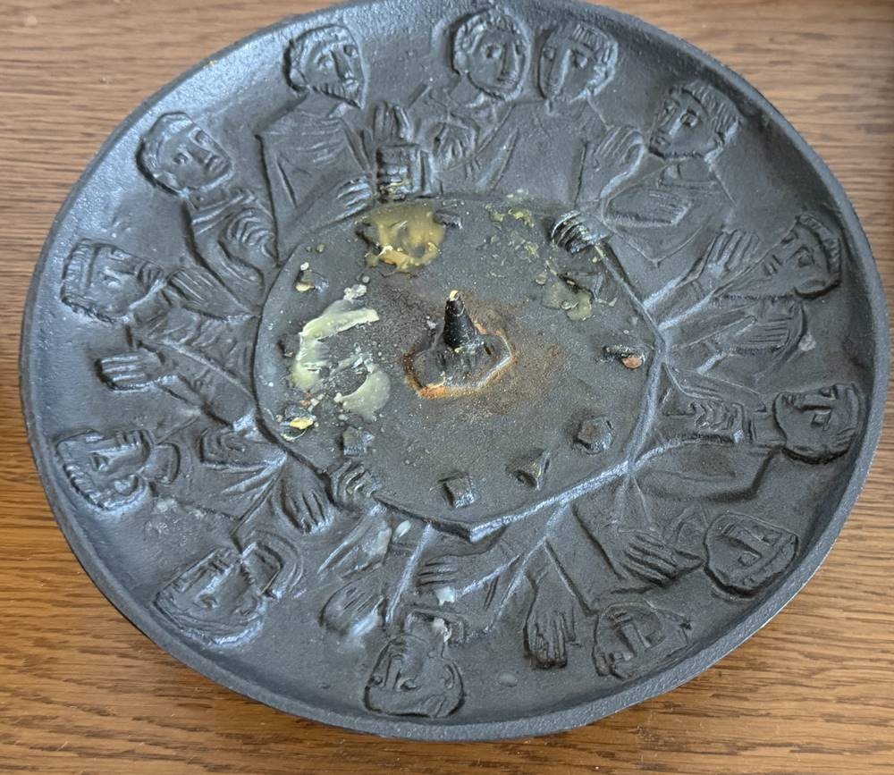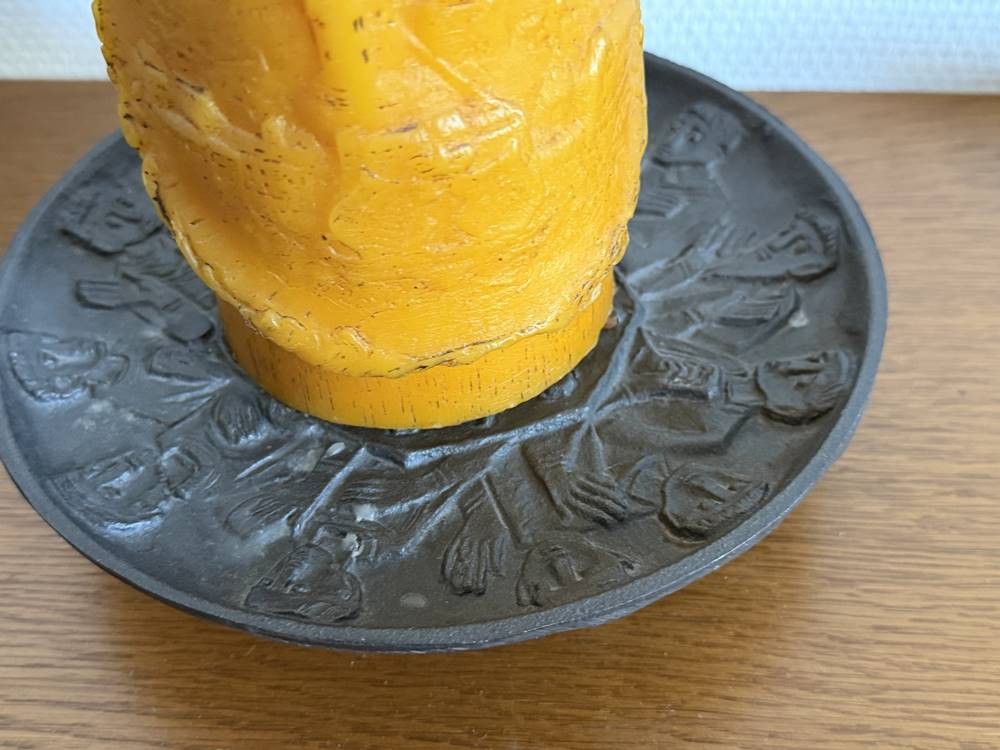 Egino WEINERT (1920-2012) wohl, gr. Eisen-Relief-Kerzenteller, umlaufend, auf drei Füssen, H-3,5 cm, D-20 cm [1]