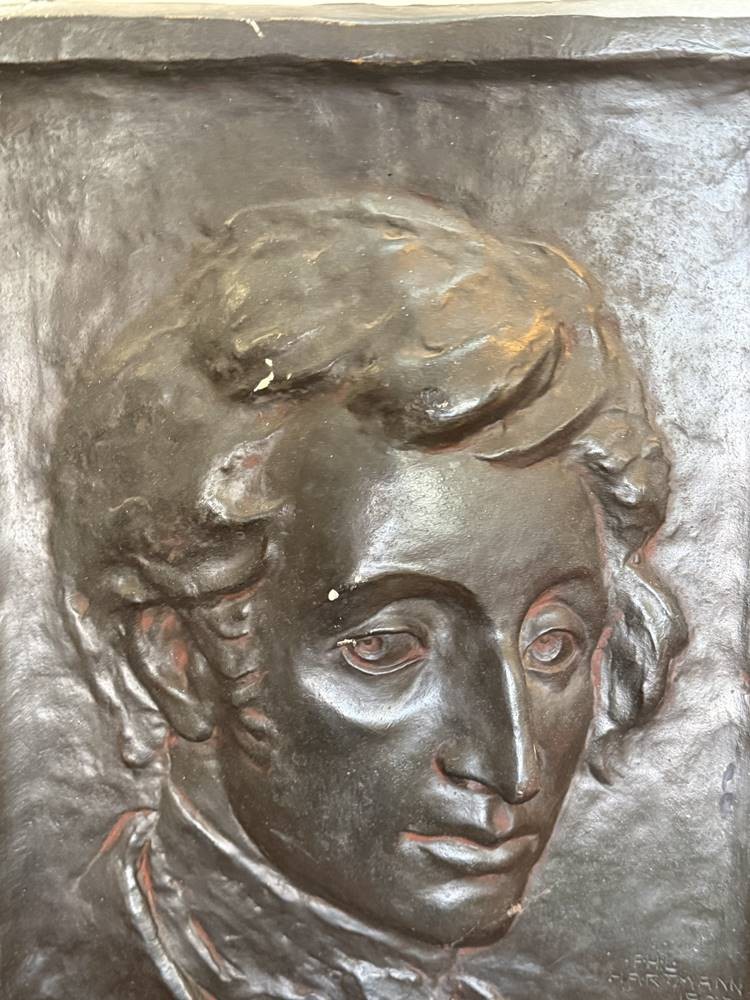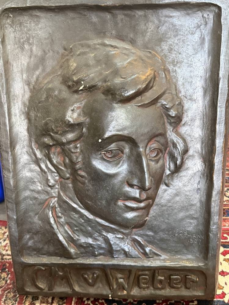 F.H.L. Hartmann, 1907, gr. . Relief-Portrai t"C.M. von Weber"" Keramik/Stuck, kl. Farbabplatzer, 54x37 cm [1]