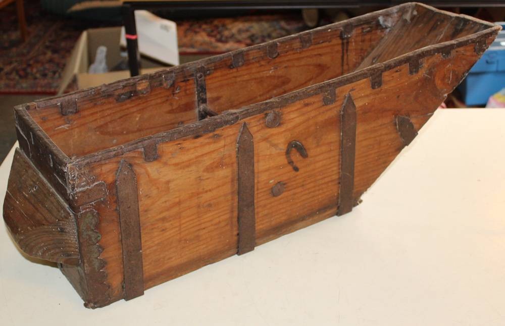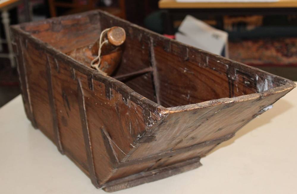Fanega, ein historisches spanisch-portugiesisches Hohlmaß, Holz, älter, ca. H-23cm, L-86cm B-22cm [1]