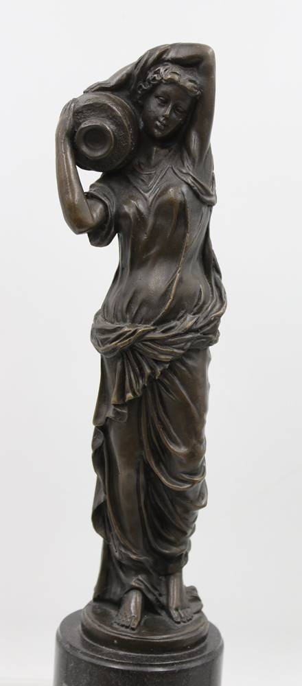 figürliche Bronze, Dame mit Krug, signiert "Milo", Steinsockel, ca. H-32,5cm [1]