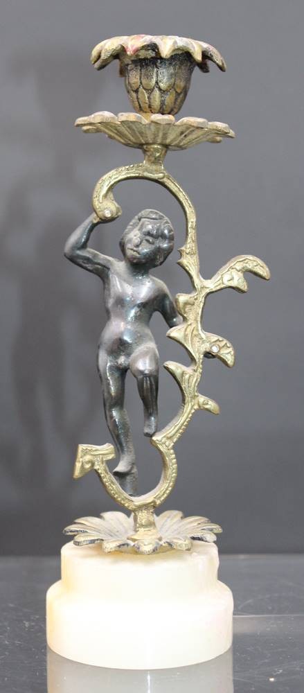 figürlicher Leuchter um 1900, Onyx-Stand, Bronze, H-19cm [1]