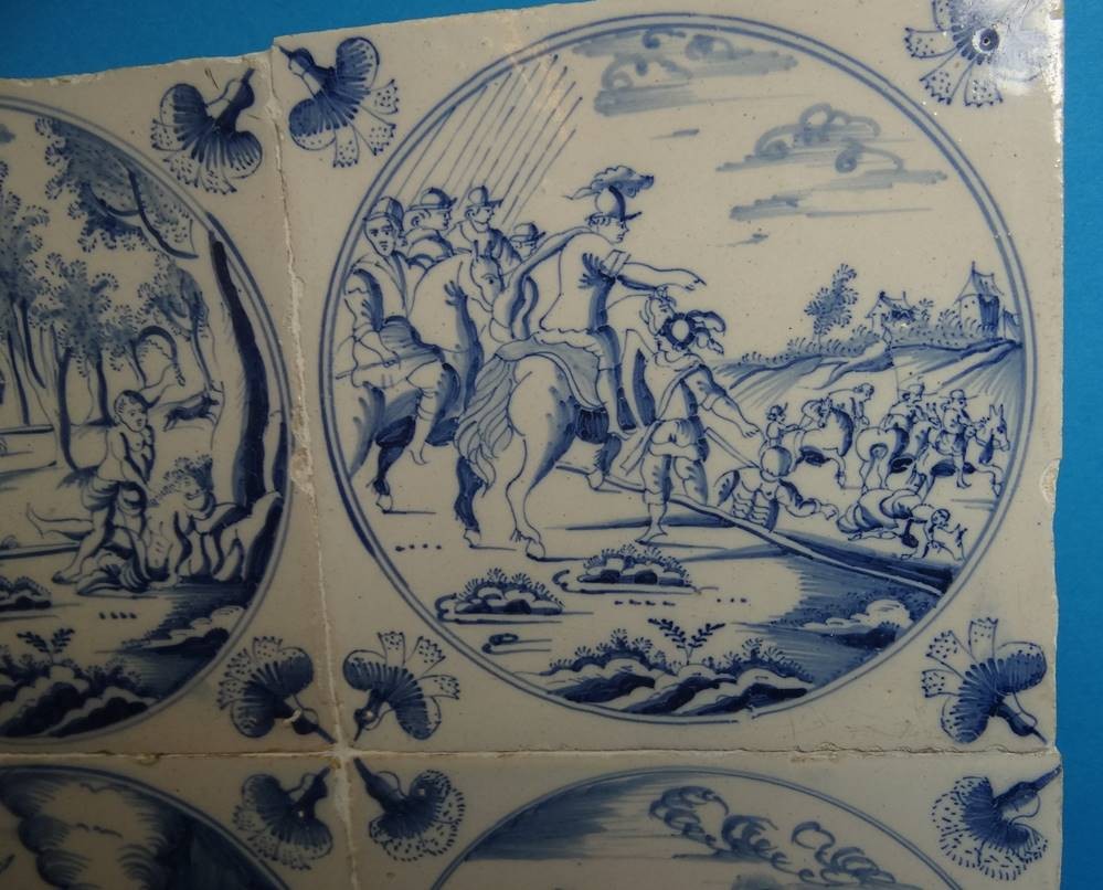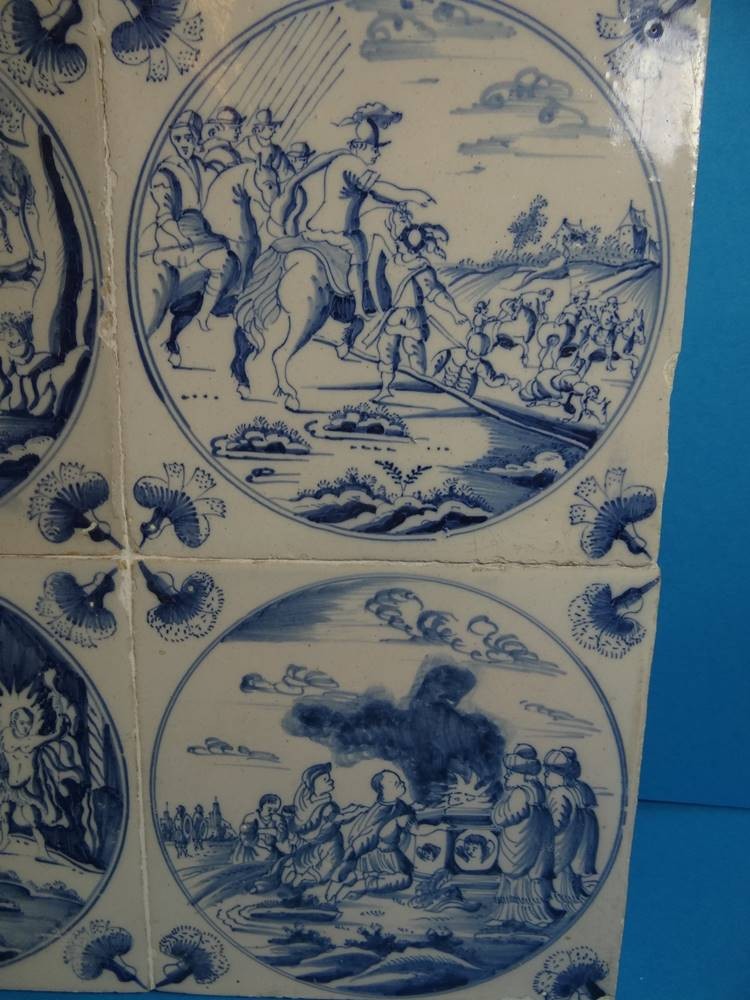 Fliesenplatte mit 6 alten Delfter Fliesen, aufwendige Bemalung, je Fliese 13x13 cm, 26x39 cm, auf Holzplatte [1]