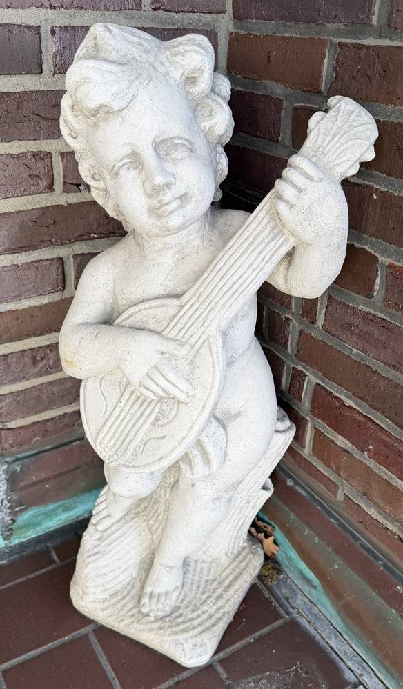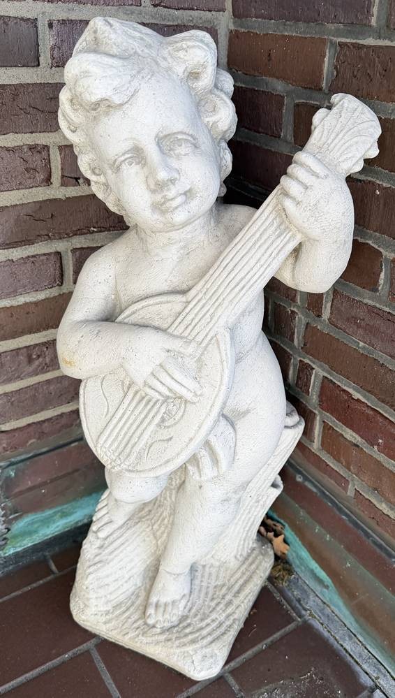 Gartenfigur, Putto mit Mandoline, H-70 cm, Stein, [1]