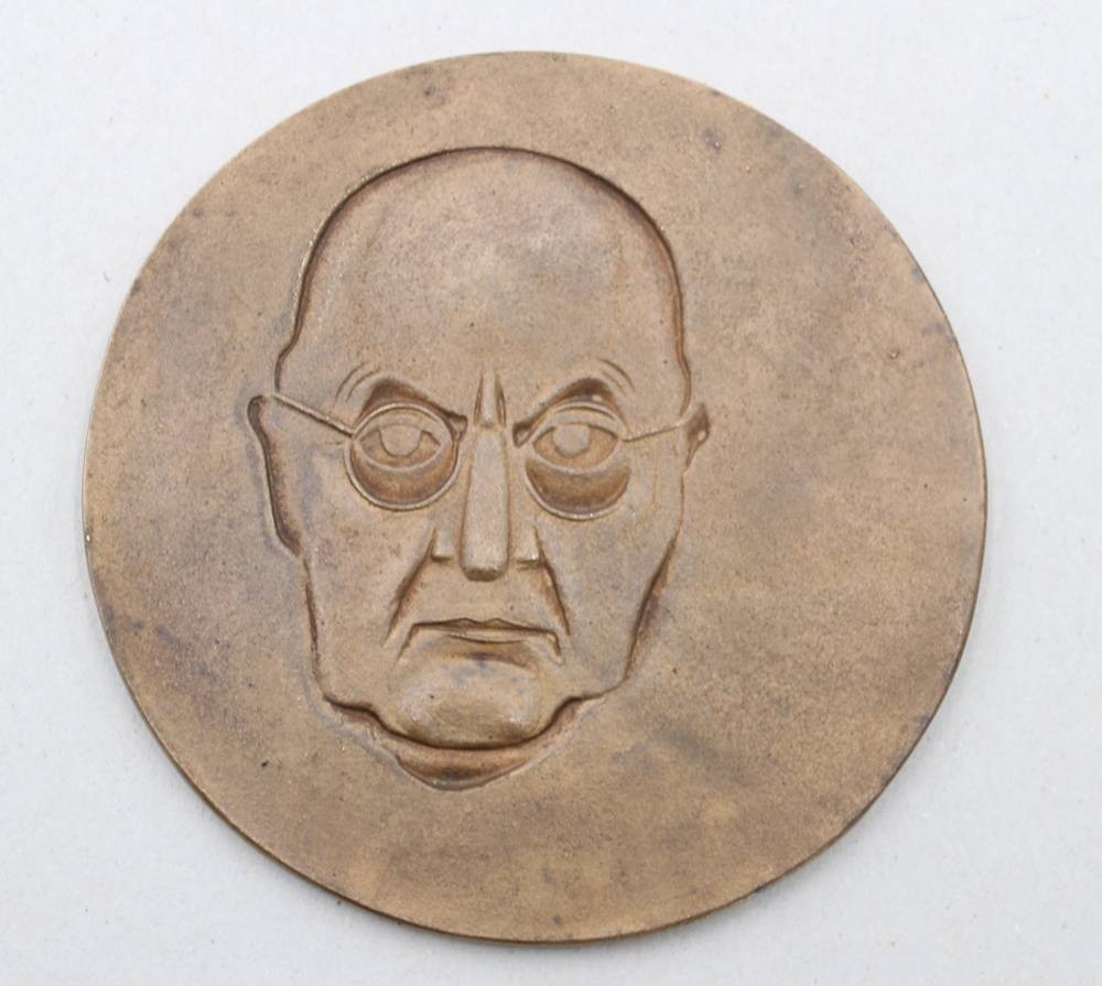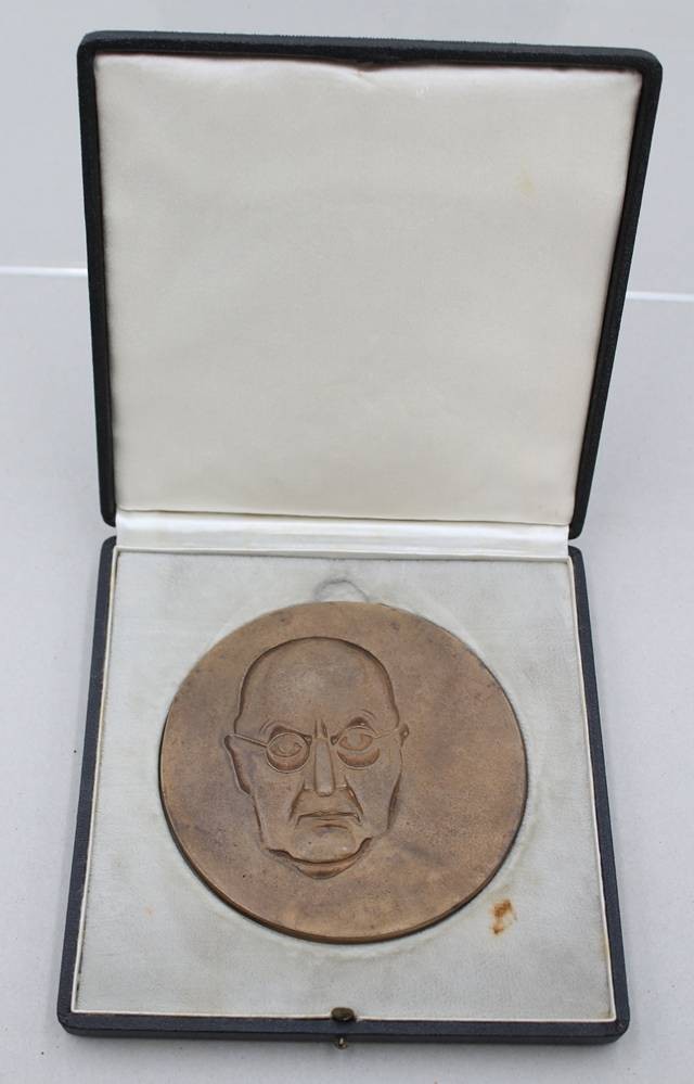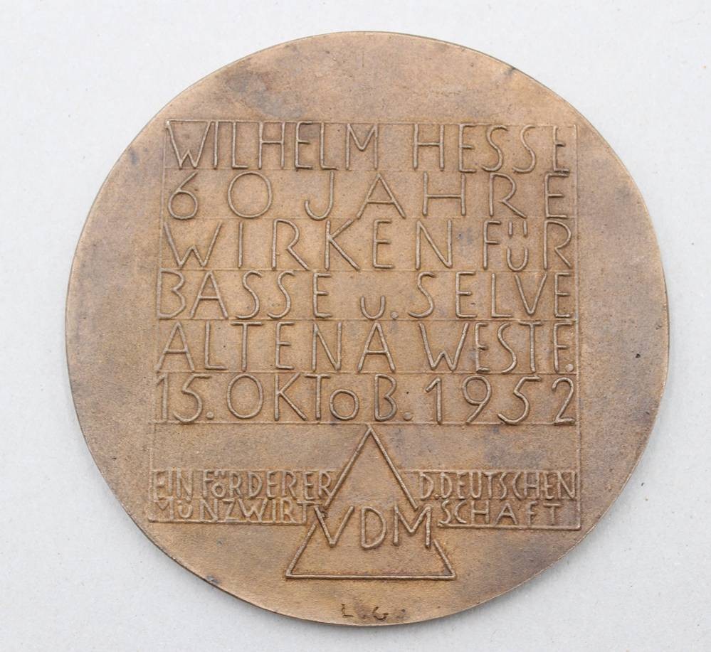 Gedenkmedaille aus Bronze, die Wilhelm Hesse am 15. Oktober 1952 für sein 60-jähriges Wirken für das Unternehmen Basse & Selve in Altena, in Kasten, D-11,5cm