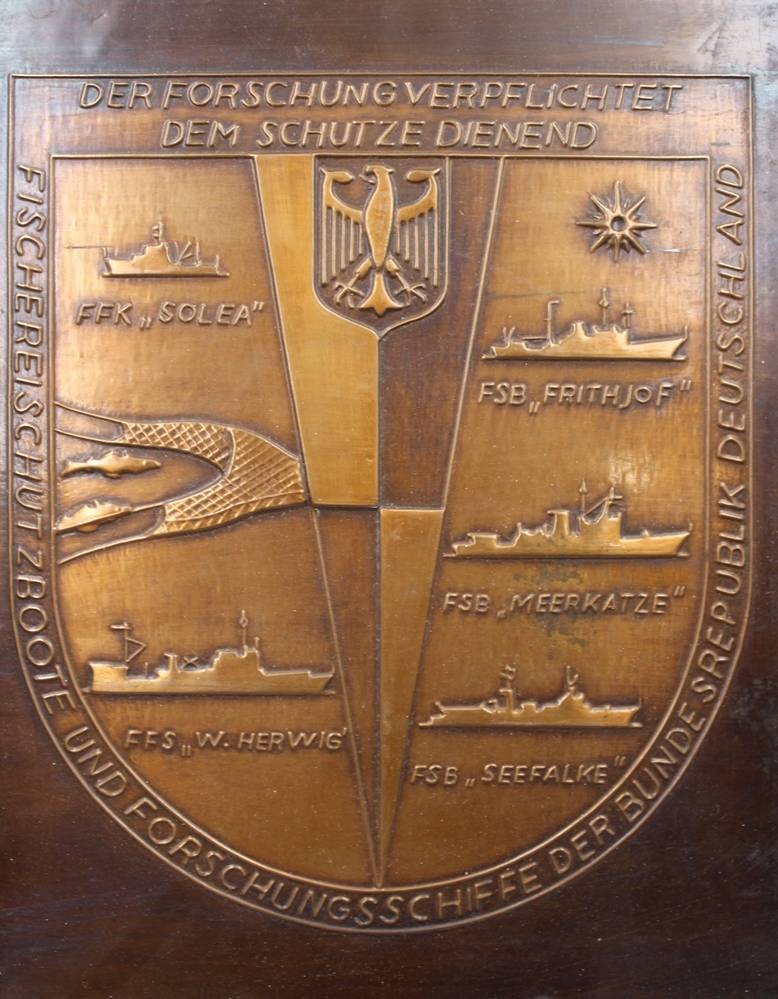 Gedenkplatte,Fischereischutzboote und Forschungsschiffe der Bundesrepublik Deutschland, Kupfer, ca. 25 x 23cm [1]