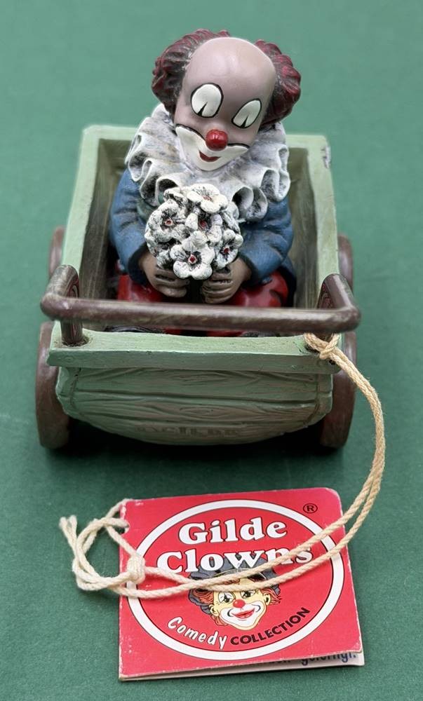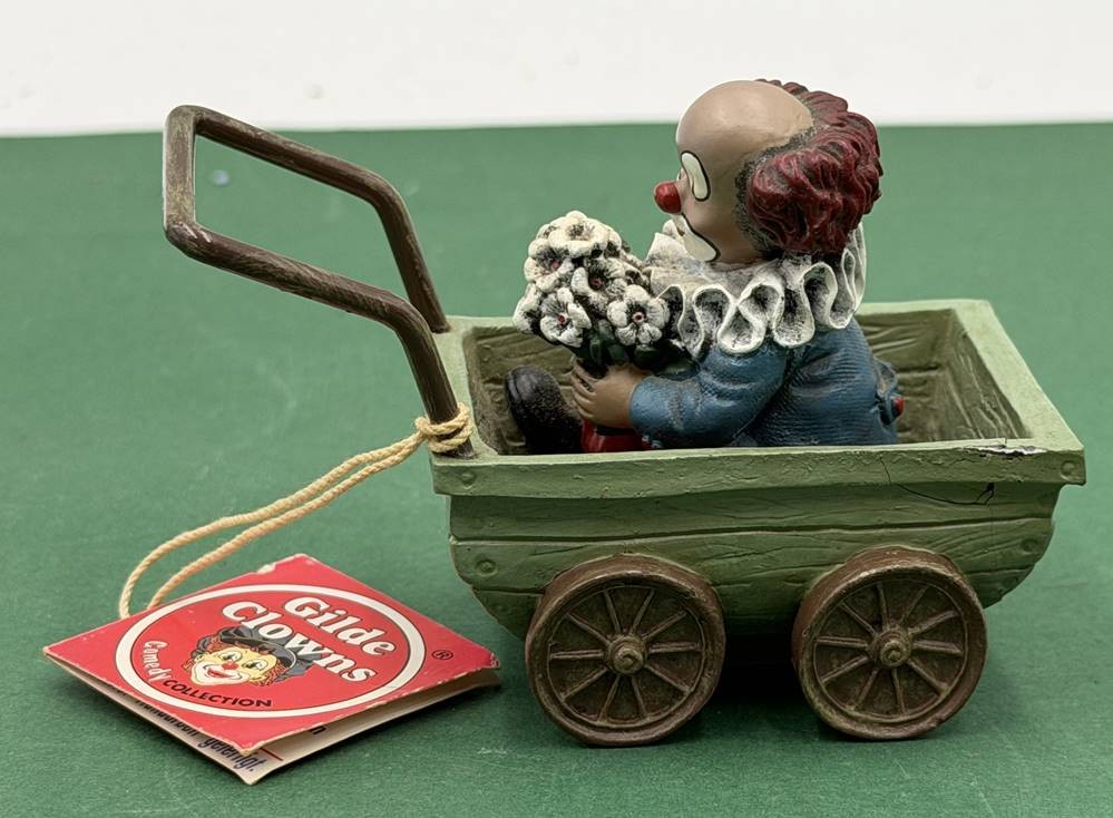Gildeclown und Kinderwagen, beide mit Etikett, 1x Hutkrempe bestossen, H-15 cm