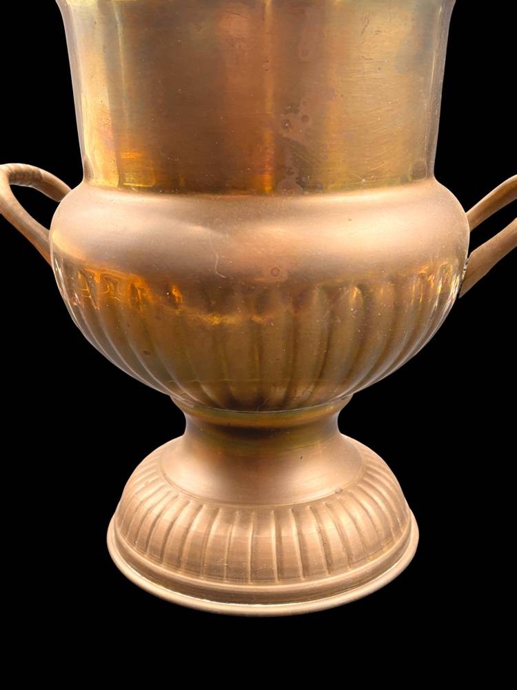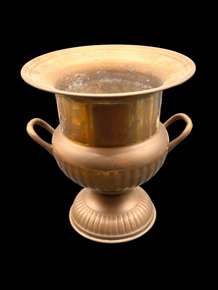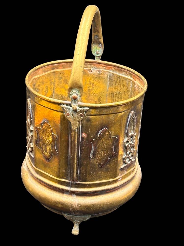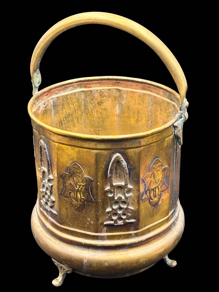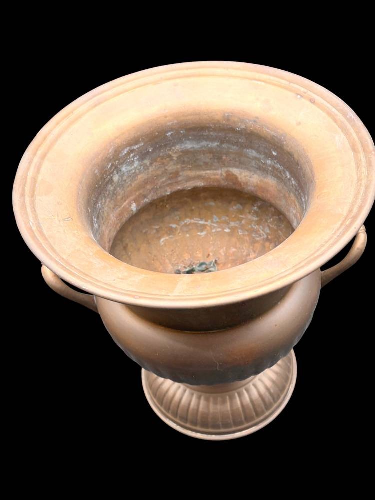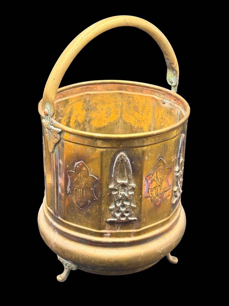 gr. alter Kupfereimer und Messing Flaschenkühler, beide Gebrauchsspuren, wohl als Blumenübertöpfe benutzt, H-46 cm (mit Henkel) und 25 cm [1]