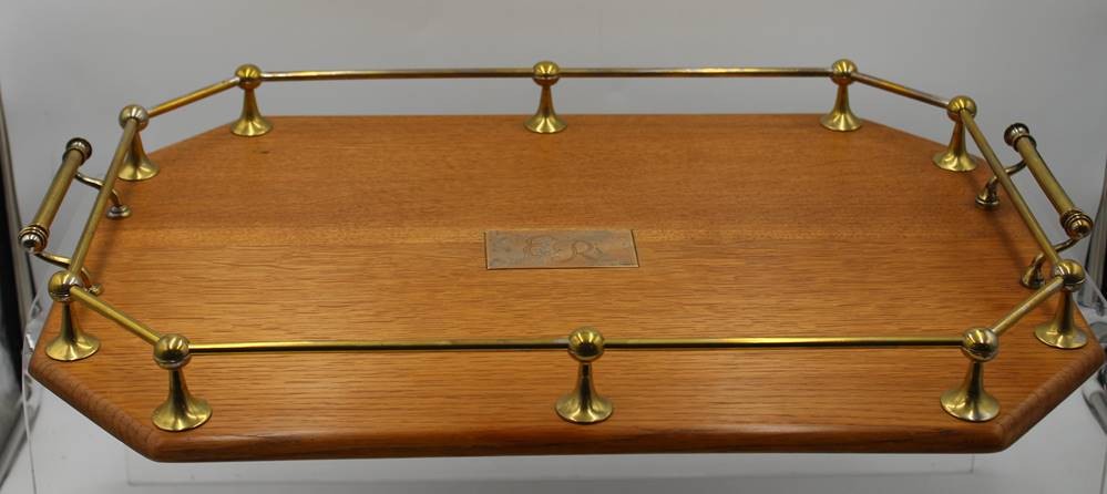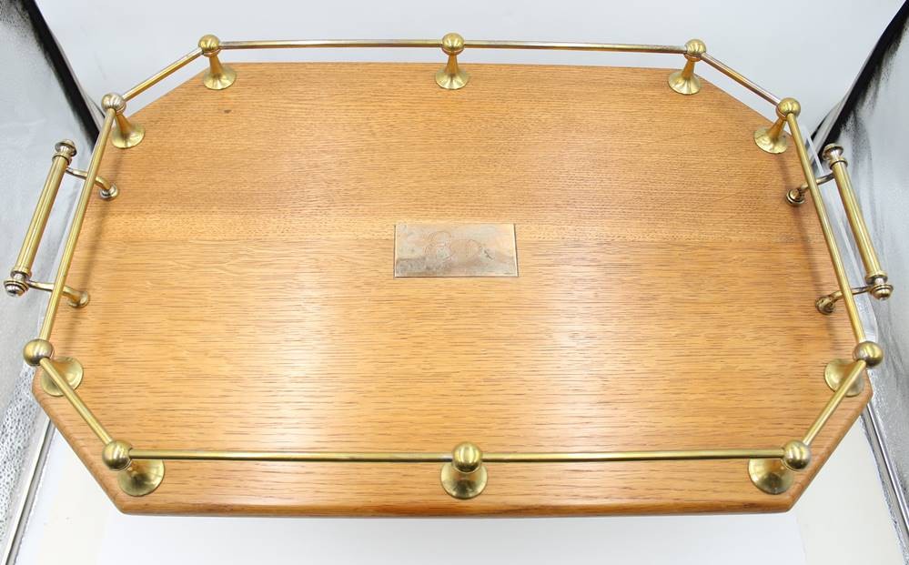 gr. Galerie-Tablett, Messingmonturen, mittig Ziermonogramm, ca. 56 x 38cm [1]