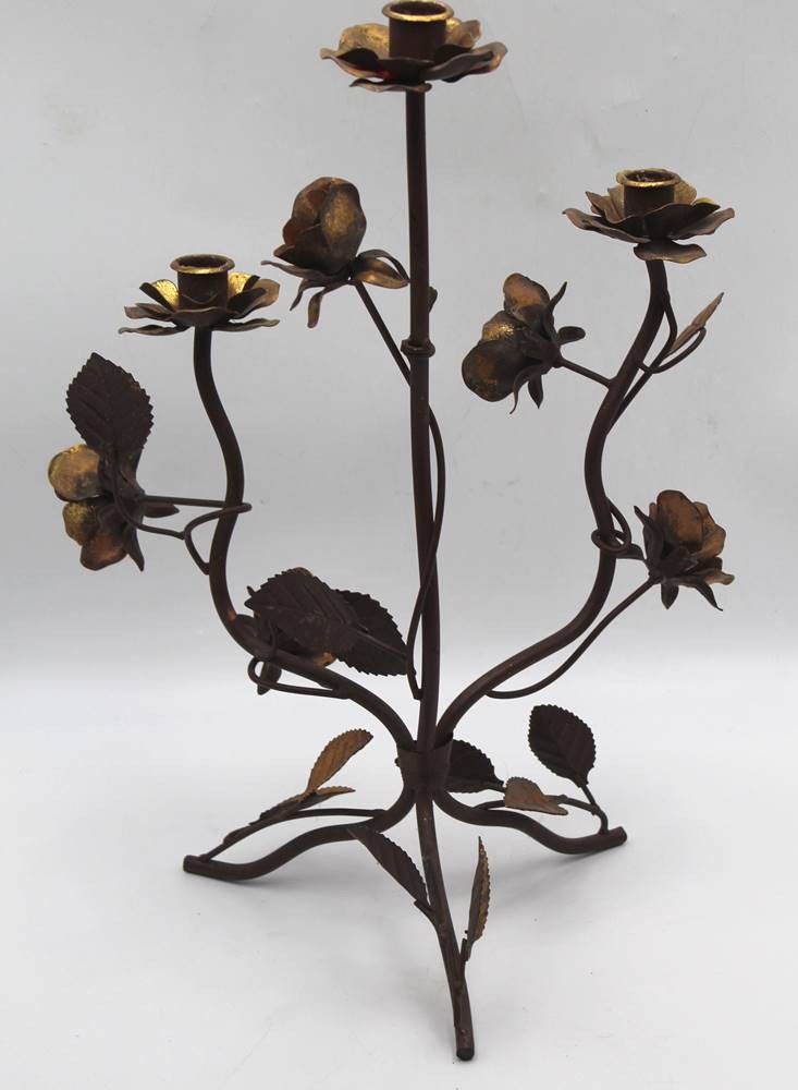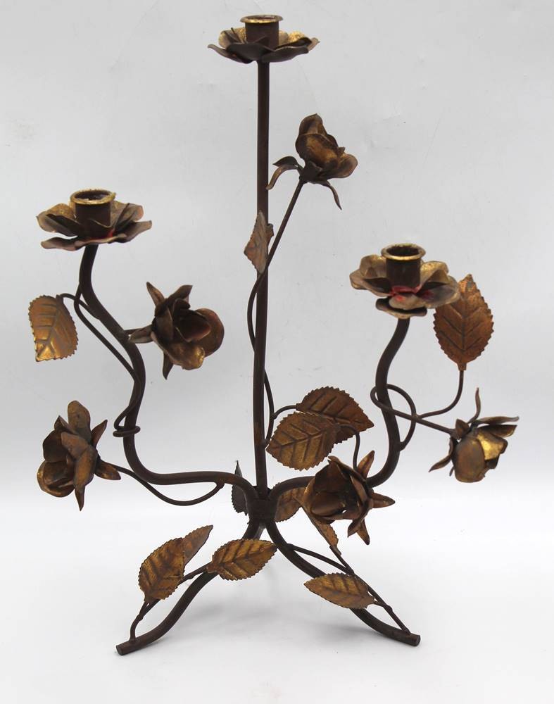 gr. Kerzenhalter, Messing, mit Blätter-und Rosen-Dekor, H-45 cm, B-ca. 34 cm [1]