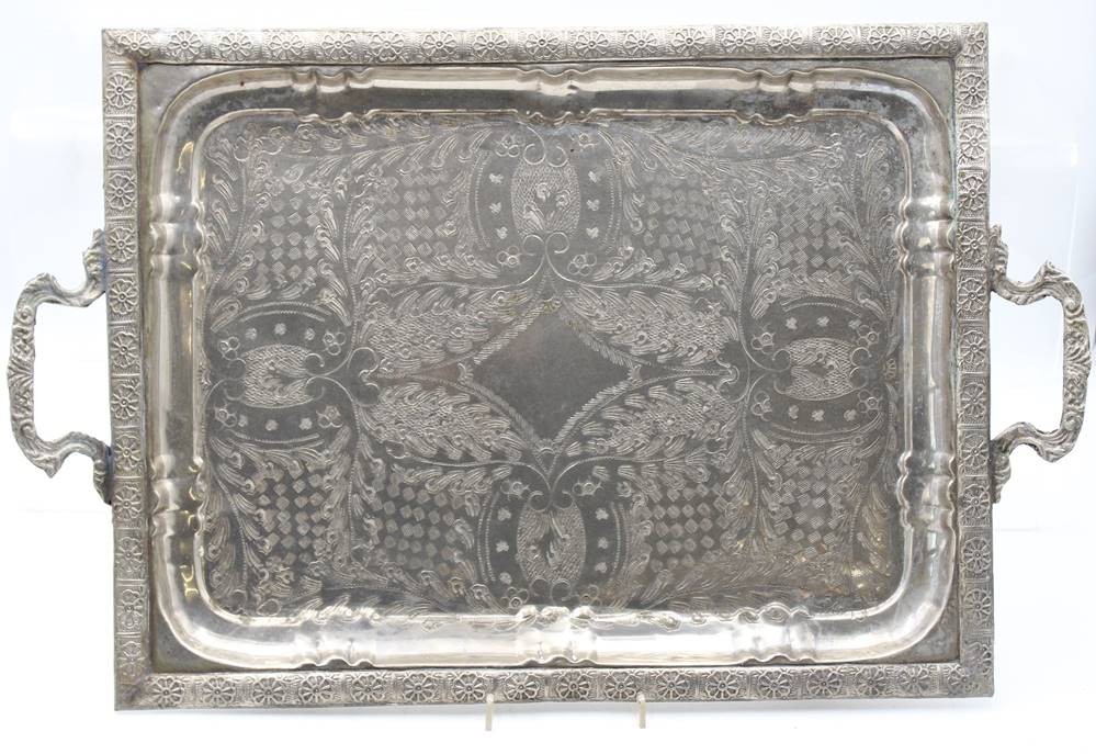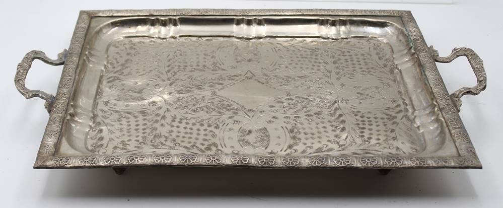 gr. Serviertablett, wohl Indien, Metall silberfarben, ca. 55 x 35cm