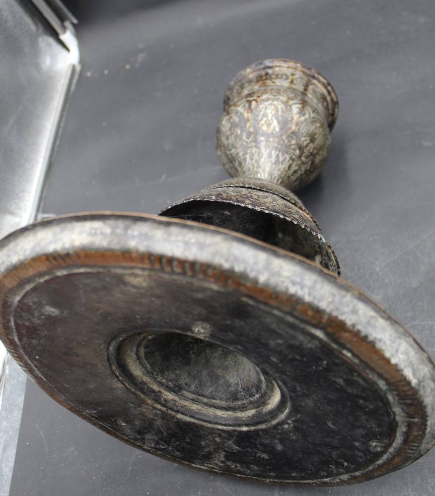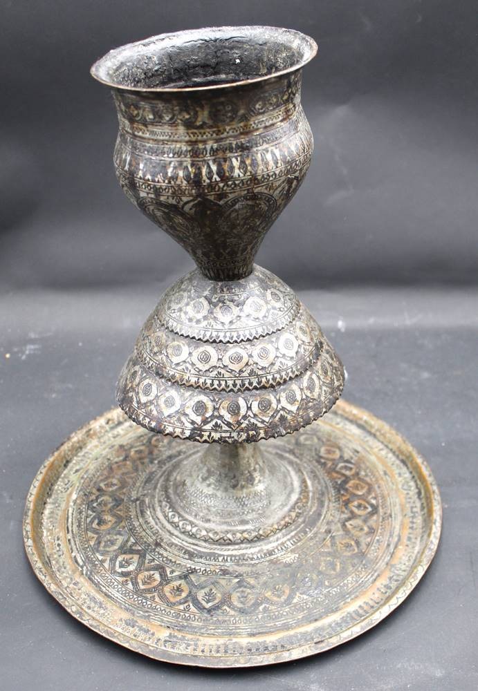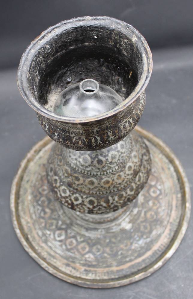 gr. Stand einer alten Wasserpfeife, Persien?, H-30 cm, innen Glasgefäss