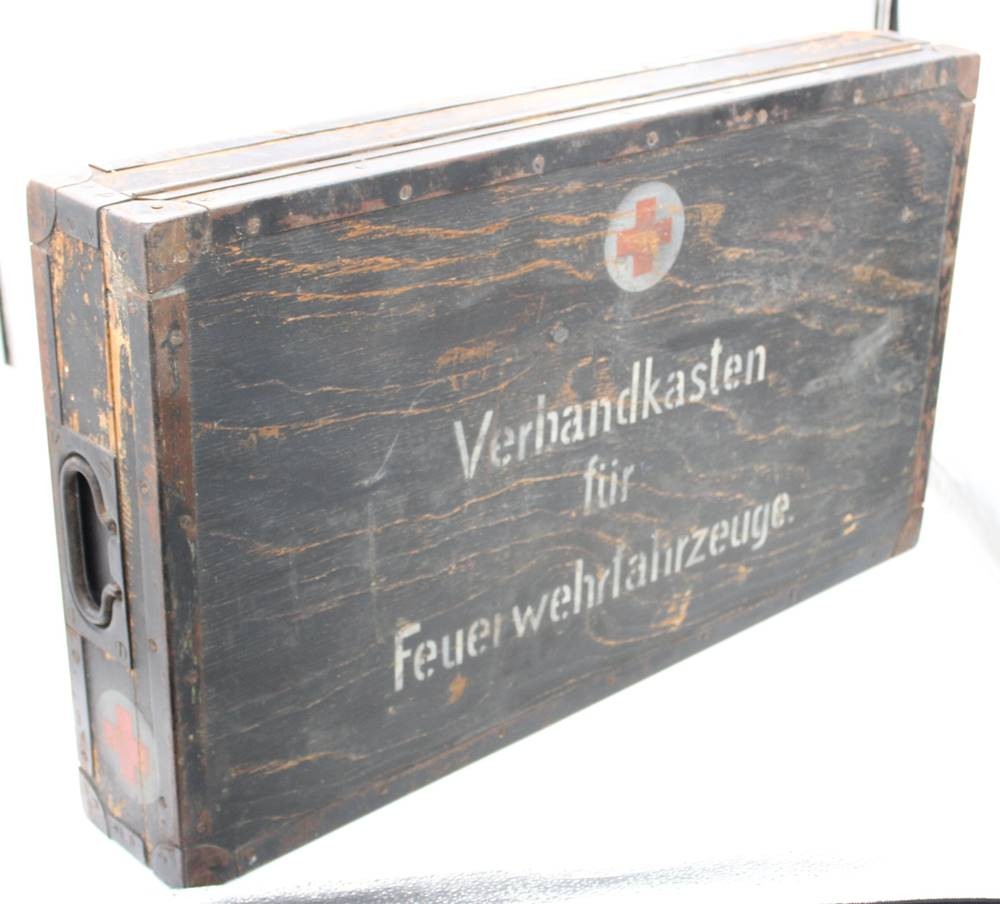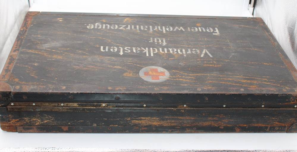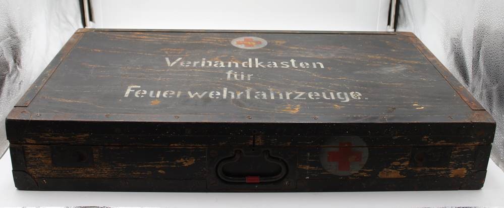 gr. Verbandskasten für Feuerwehrfahrzeug, älter, Alters-u. Gebrauchsspuren, 40 x 69 x 12cm [1]