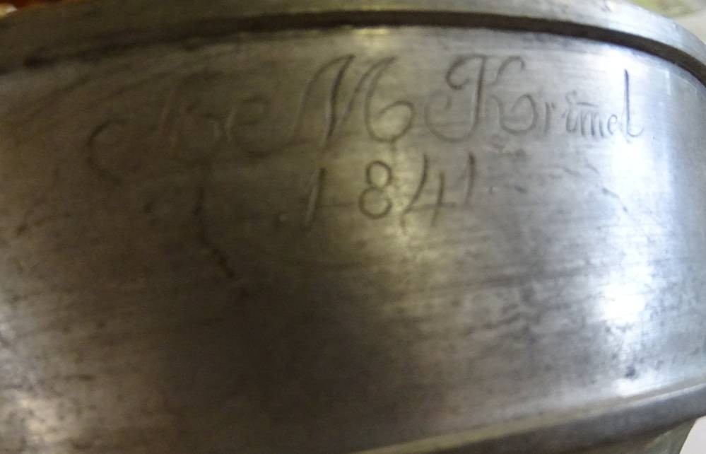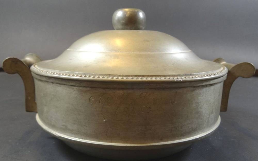 gr. Zinn-Deckelterrine, dat. 1841, H-12 cm, D-20 cm [1]
