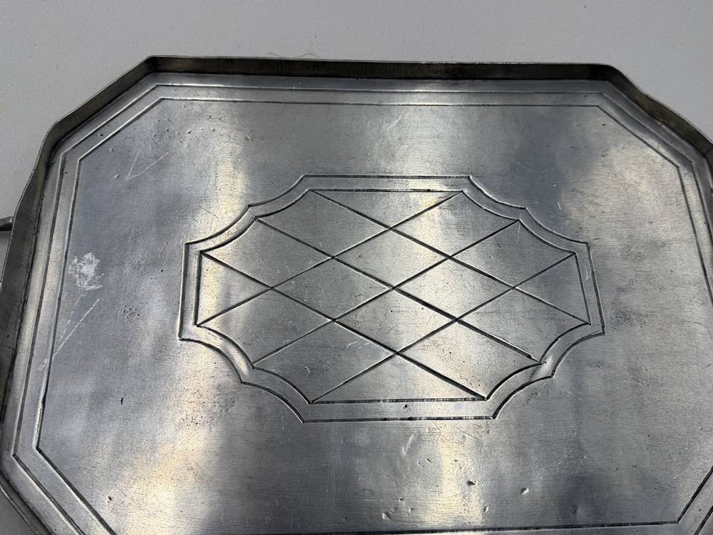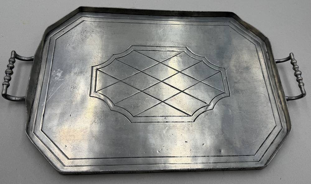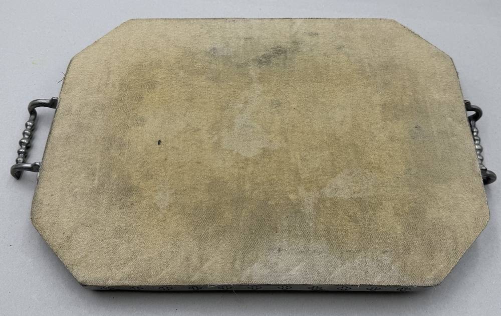 gr. Zinn-Tablett mit Griffen, 40x27 cm, Unmterseiter mit Filz [1]