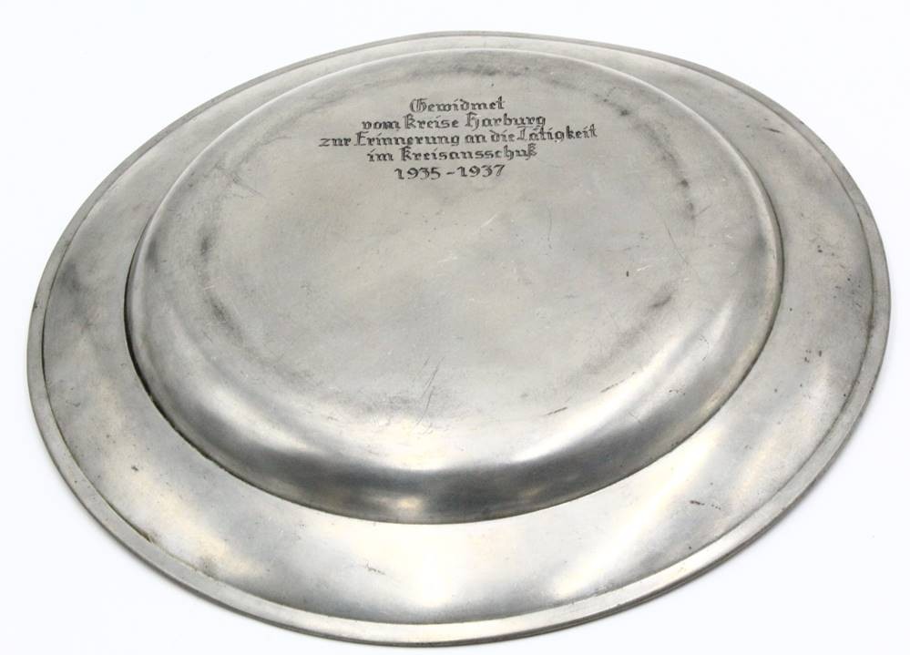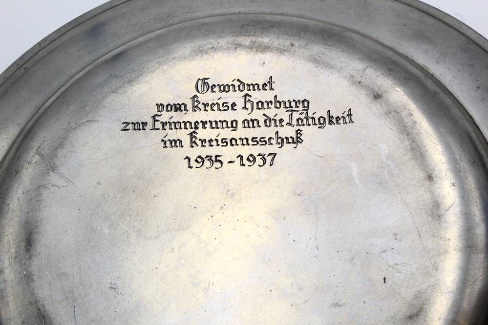gr. Zinnplatte mit Wappen von Harburg und Widmung 1935-1937, D-31 cm [1]