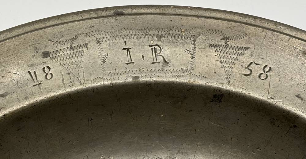 gr. Zinnschale, datiert 1858, Engelmarke, H-4 cm, D-30 cm [1]