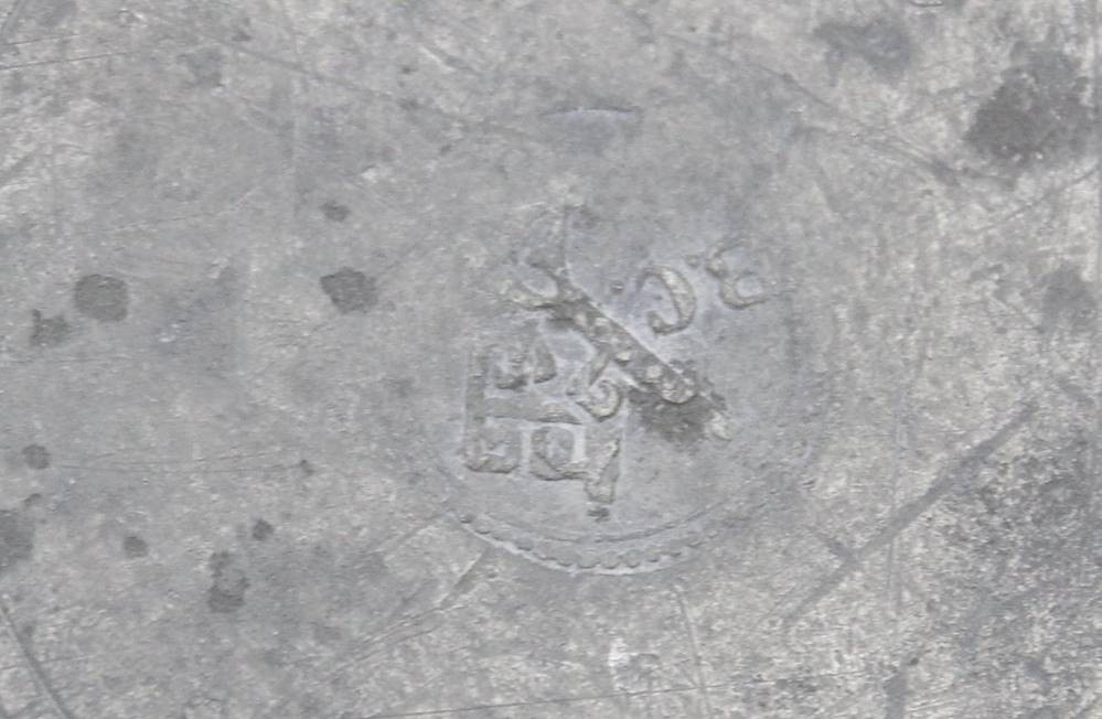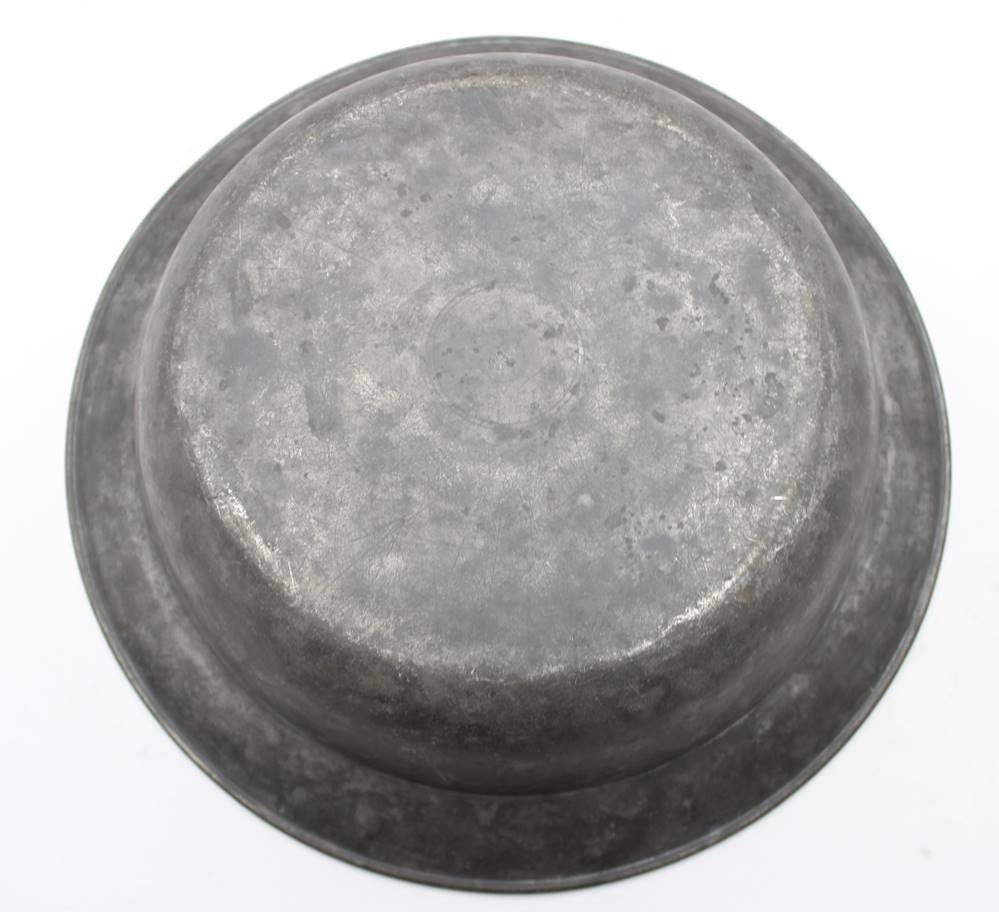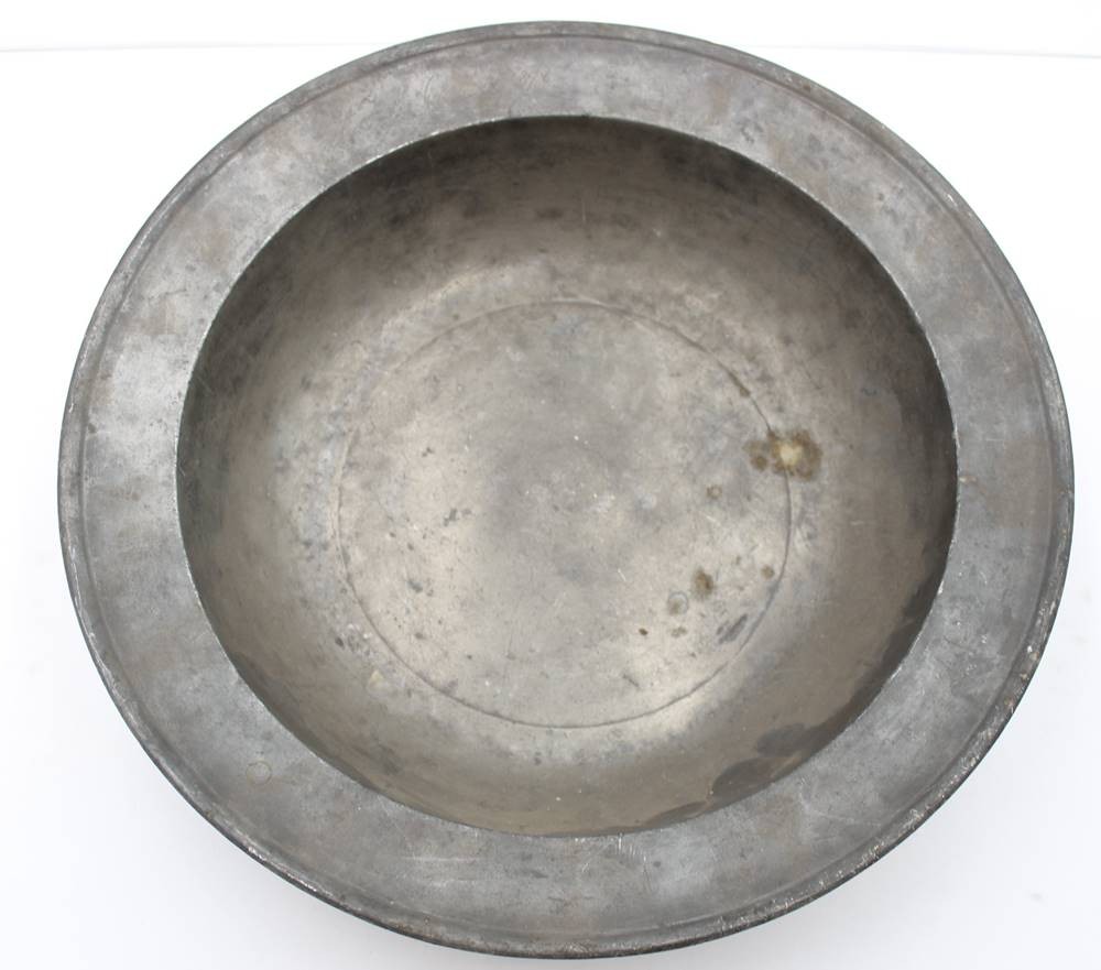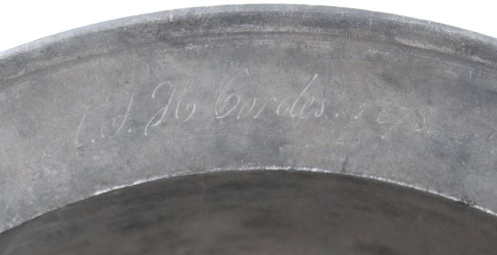 gr. Zinnschale, Namensgravur und datiert 1878, ca. H-8cm D-34,5cm [1]