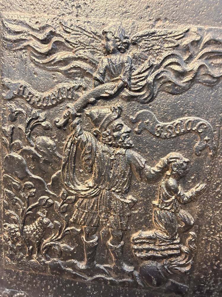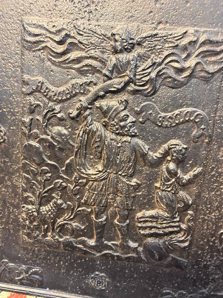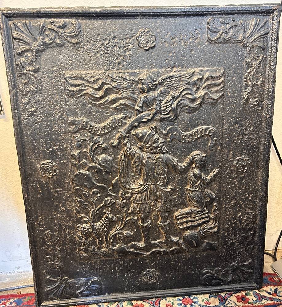 grosse Ofenplatte um 1700, biblische Szene "Abraham mit seinem Sohn", gut erhalten, ca. 60 kg, 86x71 cm, Speditionsversand [1]