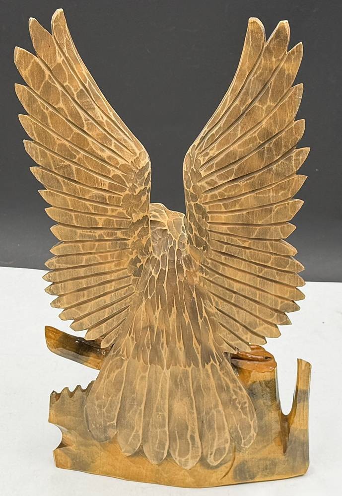 grosser geschnitzter Holz-Adler, Unterseite russisches Etikett, H-41 cm, B-23 cm