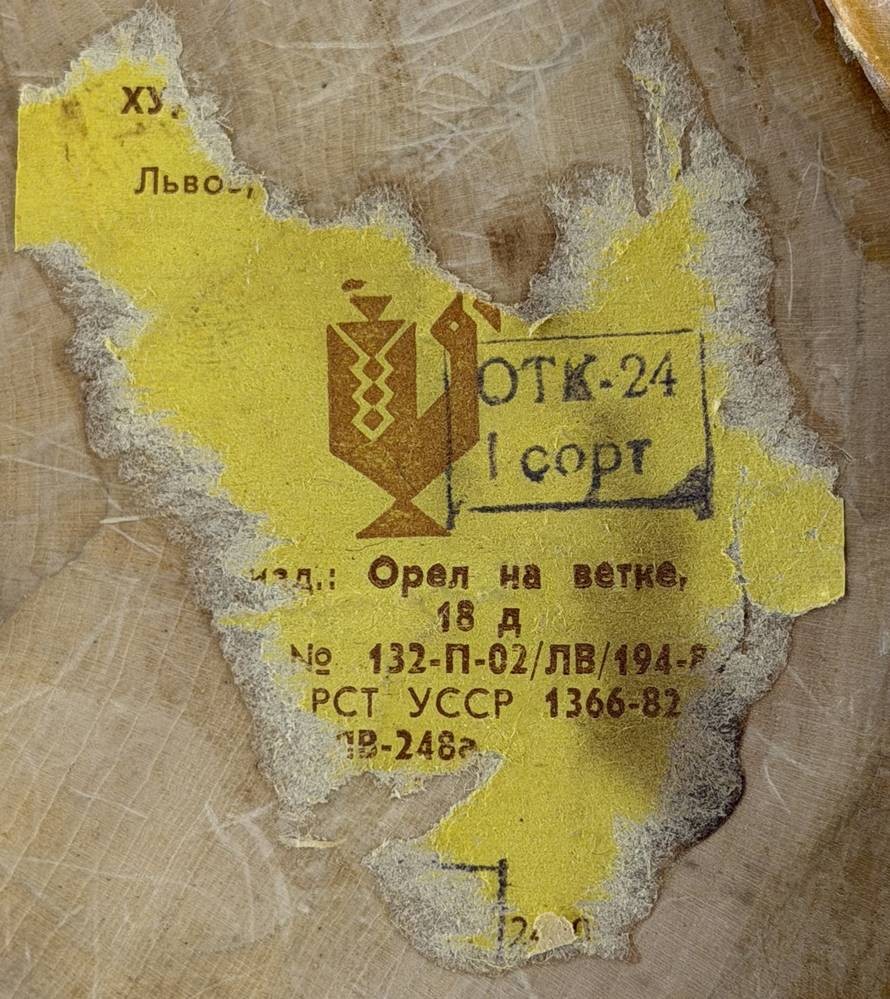 grosser geschnitzter Holz-Adler, Unterseite russisches Etikett, H-41 cm, B-23 cm [1]