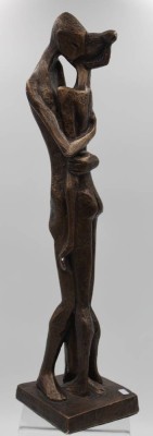 hohe Figurengruppe, Liebespaar, Austin Prod. Canada, Kunstmasse bronziert, div. kl. Abplatzer. H-54cm